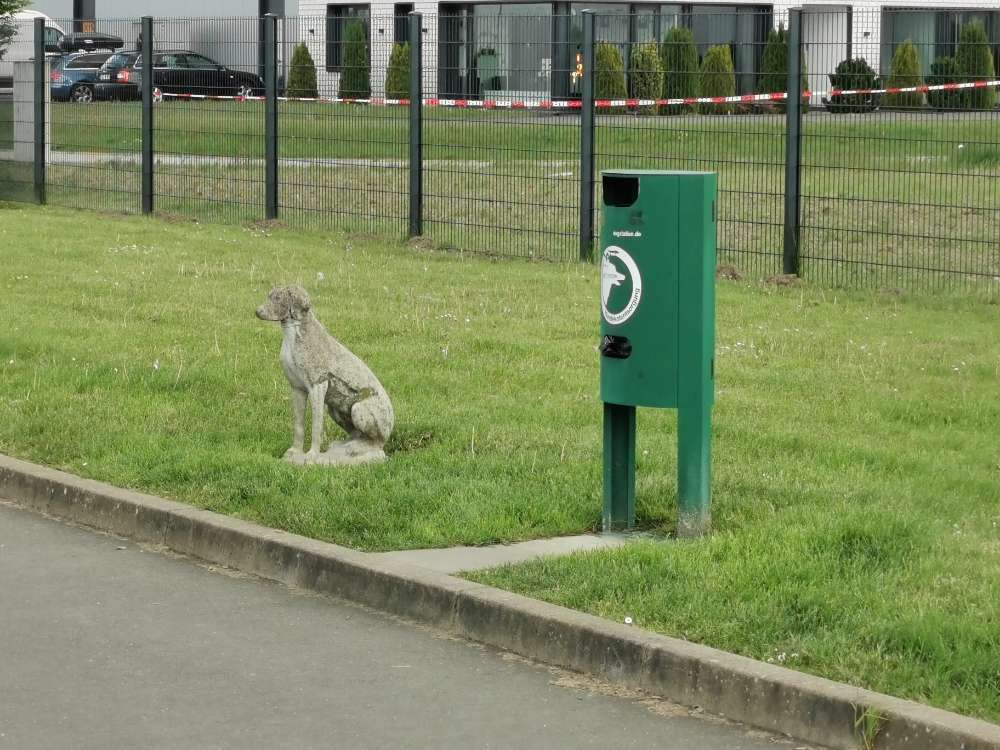 Ein großer Parkplatz mit Kotbeutelspender ist vorhanden.