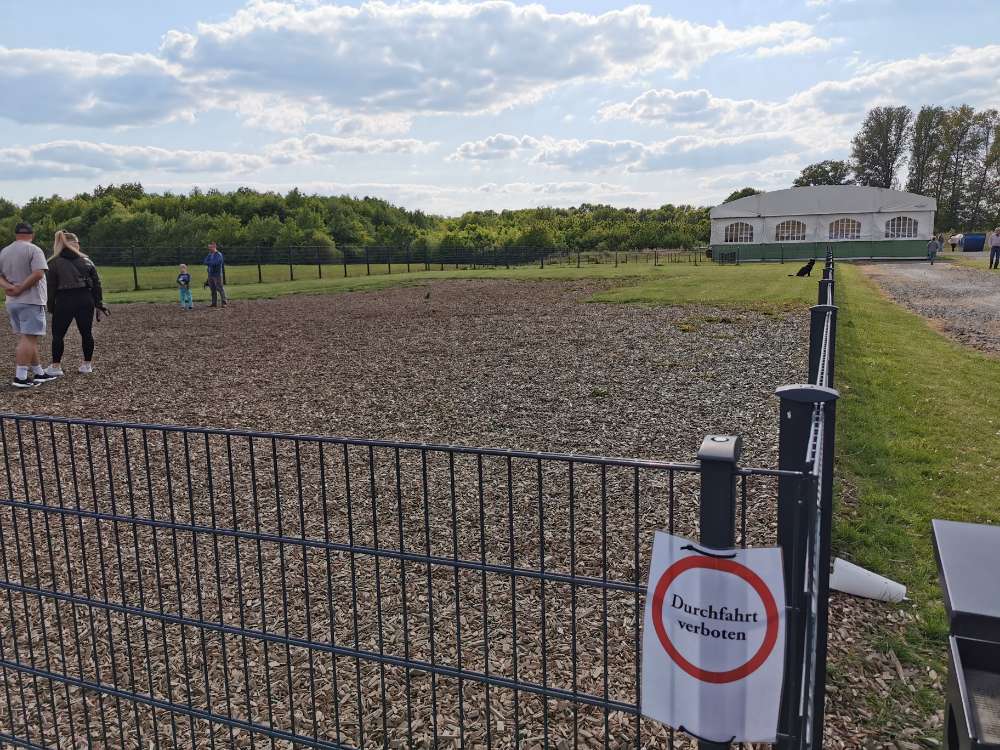 Die eingezäunte Hundefreilauf - Wiese (mit Wassernapf) auf dem Gelände ist natürlich das Highlight! Bänke fehlen jedoch. Unser Hund hatte dort richtig Spaß! :)