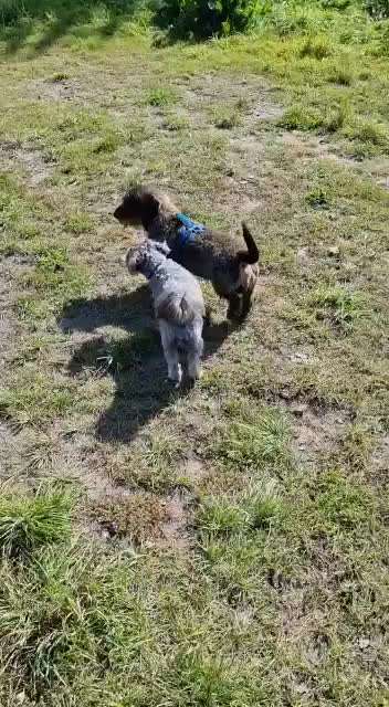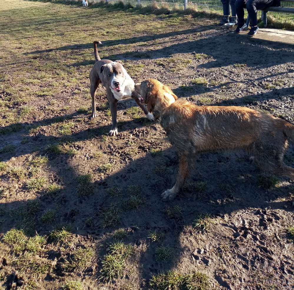 Passt nur nicht immer mit den Spielpartnern, aber ist ein schönes sicheres Gelände mit Sitzmöglichkeiten und netter Austauschmöglichkeit mit anderen Hundebesitzern.