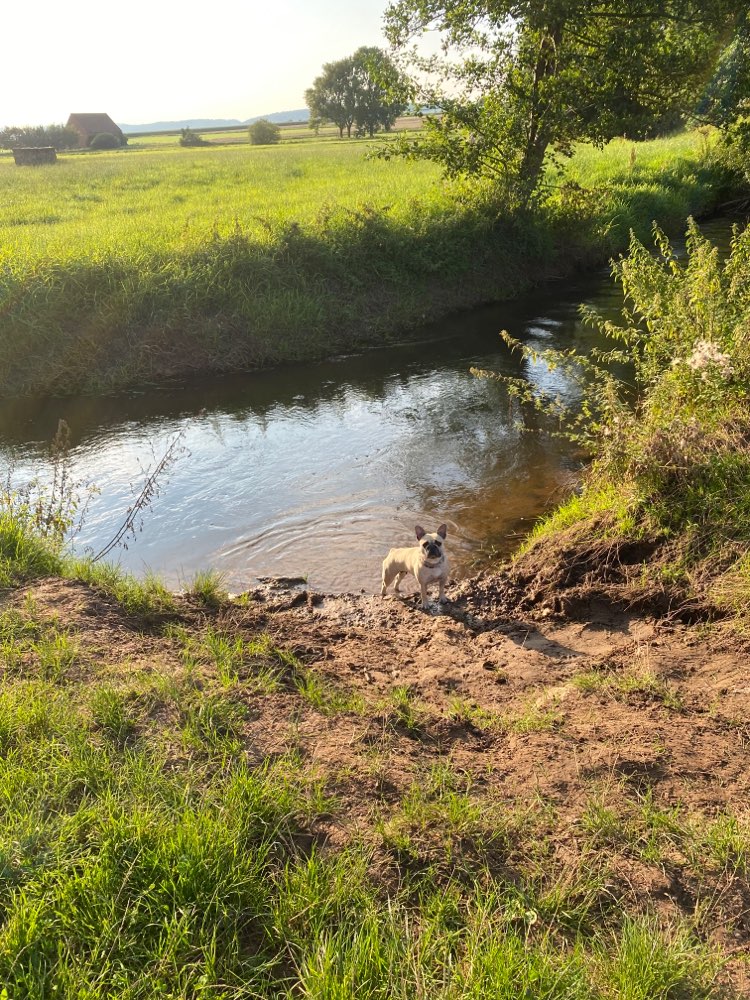 Nachdem wir den kleinen Einstieg in den Bach gefunden hatten, waren wir echt begeistert. Sammy hatte Spaß