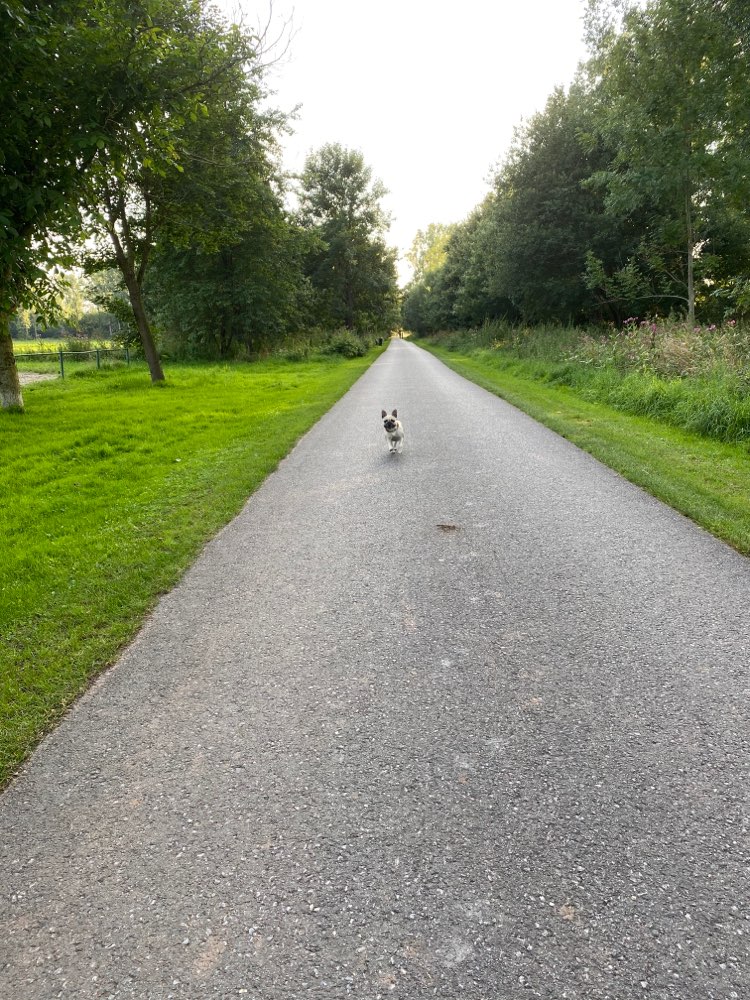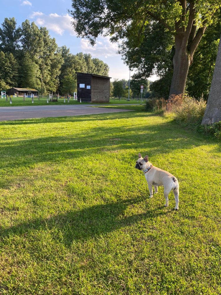 Man kann seine Hunde dort ohne Leine laufen lassen, da wenig Verkehr ist. Es gibt große Wiesen zum Spielen und einen Bach.