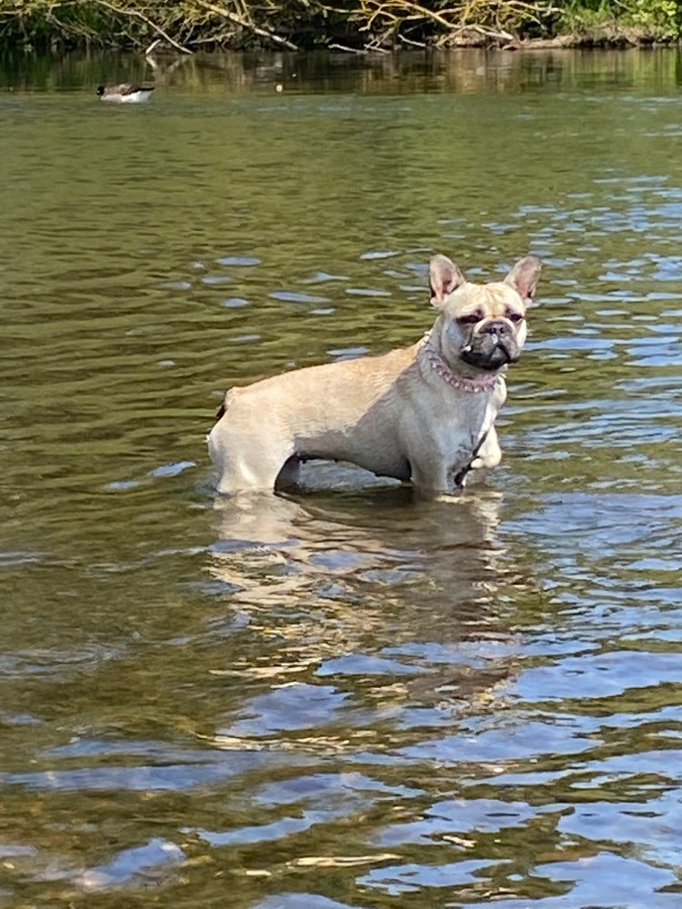 Ein sehr schönes Flecken um die Hunde ans Wasser zu lassen. Wir haben uns ein bisschen unterhalb der Wehr nieder gelassen und ich bin mit meiner Hündin den Bachlauf (falls man das bei einem Fluss auch so nennt 😅) entlang gelaufen. Das einzige worauf an dieser Stelle gerade mit kleineren Hunden geachtet werden sollte, ist die teils doch sehr starke Strömung. Die ist oberhalb deutlich geringer