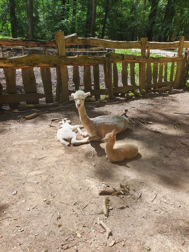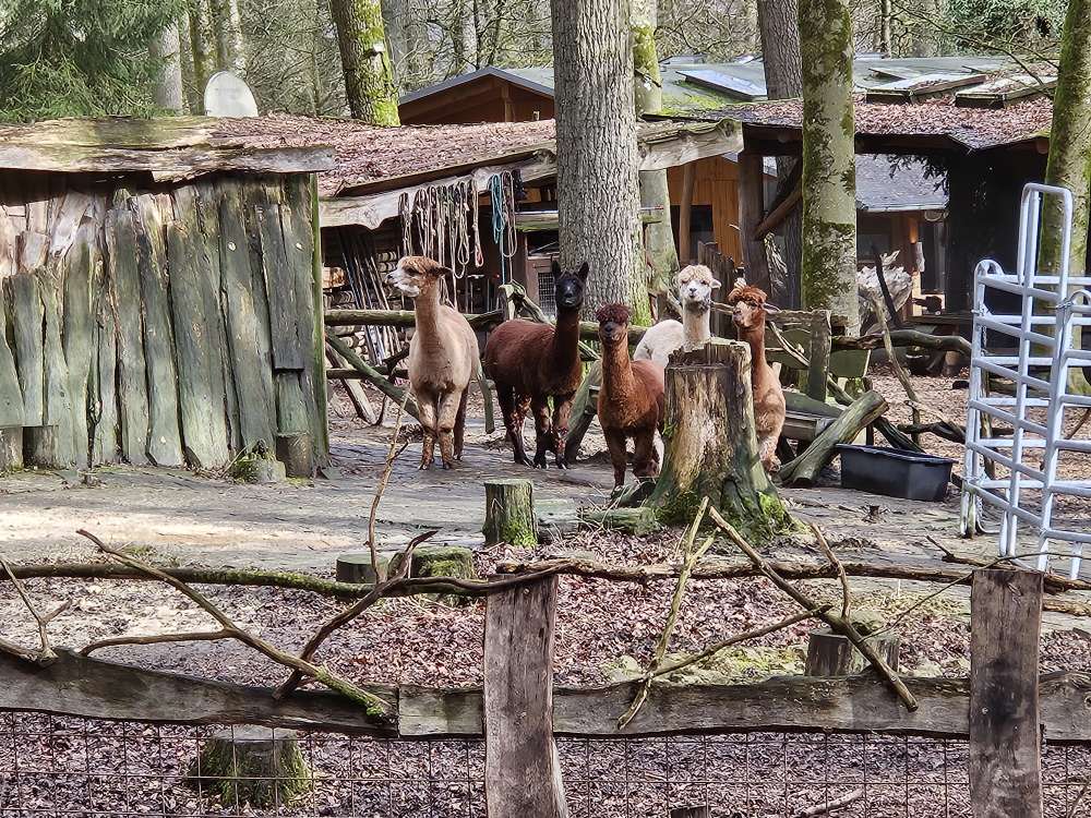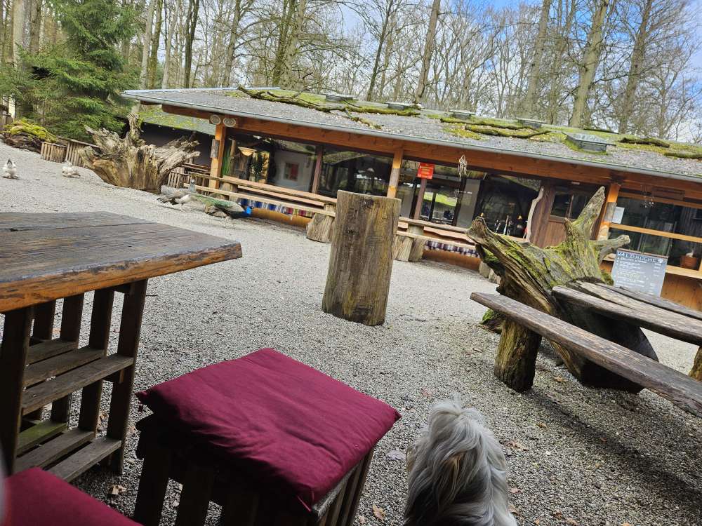 Hier kann man prima durch den Wald laufen oder auch den geteerten Weg nutzen (Vorsicht auch beliebt bei Fahrradfahrer:innen). Wenn man die Runde vom Parkplatz links rein (nicht beim Outdoorzentrum) und dann an der Straße Rechts, kommt man auf dem Waldpfad, dem folgt man gut 1,5 km und kommt dann irgendwann zu einer Gabel, wo es links hoch oder rechts runter geht, wenn man runter geht kommt man wieder zum geteerten weg, wenn man den wiederum rechts runter geht (sieht aus wie eine Allee) kommt man wieder zum Outdoorzentrum, wo es auch essen und trinken gibt (und Eis im Sommer ^-^). Es gibt dann noch ein paar längere Strecken über den Skulpturenpark u.ä. Aber da müsst ihr selbst mal schauen. Im Outdoorzentrum Hunde anleinen, da wilde Tiere teils frei rumlaufen, z.B. Pfauen und Hasen und ab und an werden auch außerhalb die Alpakas Gassi geführt also leint eure Hunde besser nur ab wenn sie gut abrufbar sind, Wind ist in dem Wald auch ab und an unterwegs ^-^.