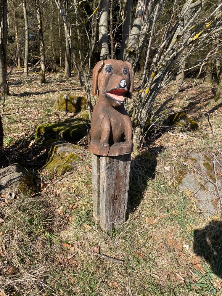 Eine schöne kleine Runde für einen Sonntagsspaziergang. Gestartet wird am Parkplatz der Krombachtalsperre. Ein kurzes Überqueren der Straße und des Feriengebietes und schon ist man auf einem Weg, welcher liebevoll mit Holzfiguren dekoriert ist. Achtung! Augen aufhalten! Viele Figuren entdeckt man nicht auf den ersten Blick.