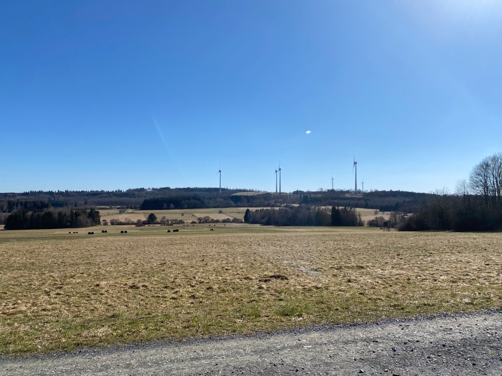 Vorbei am Biathlon Trainingsplatz geht es einen geschotterten Weg zurück Richtung Krombach. Unterwegs gibt es viele Möglichkeiten die Leine abzunehmen. Auf der ersten Hälfte trifft man kaum auf Menschen.
