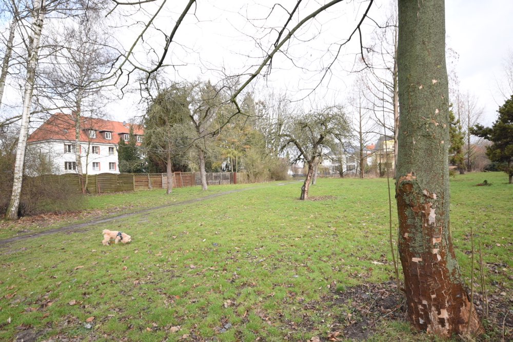 Eine kleine Hundewiese, wo wir uns oft mit Nachbarn treffen. Es ist keine offizielle Hundewiese der Stadt.