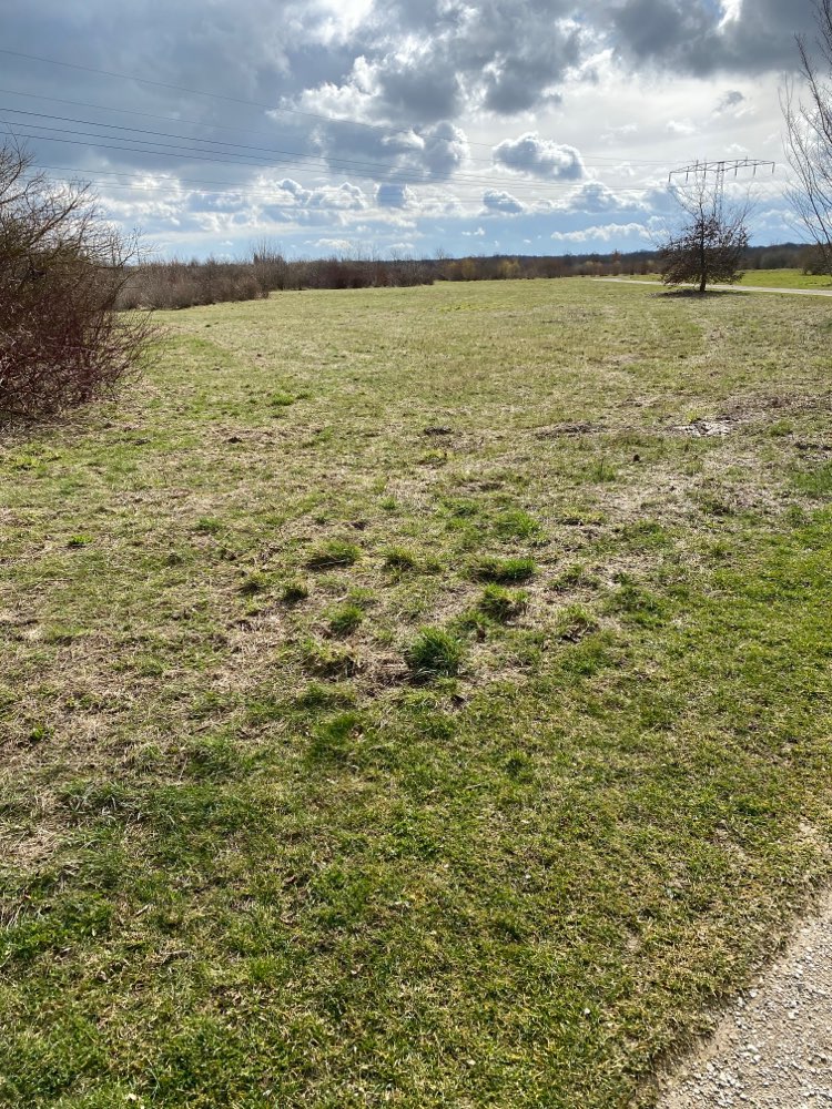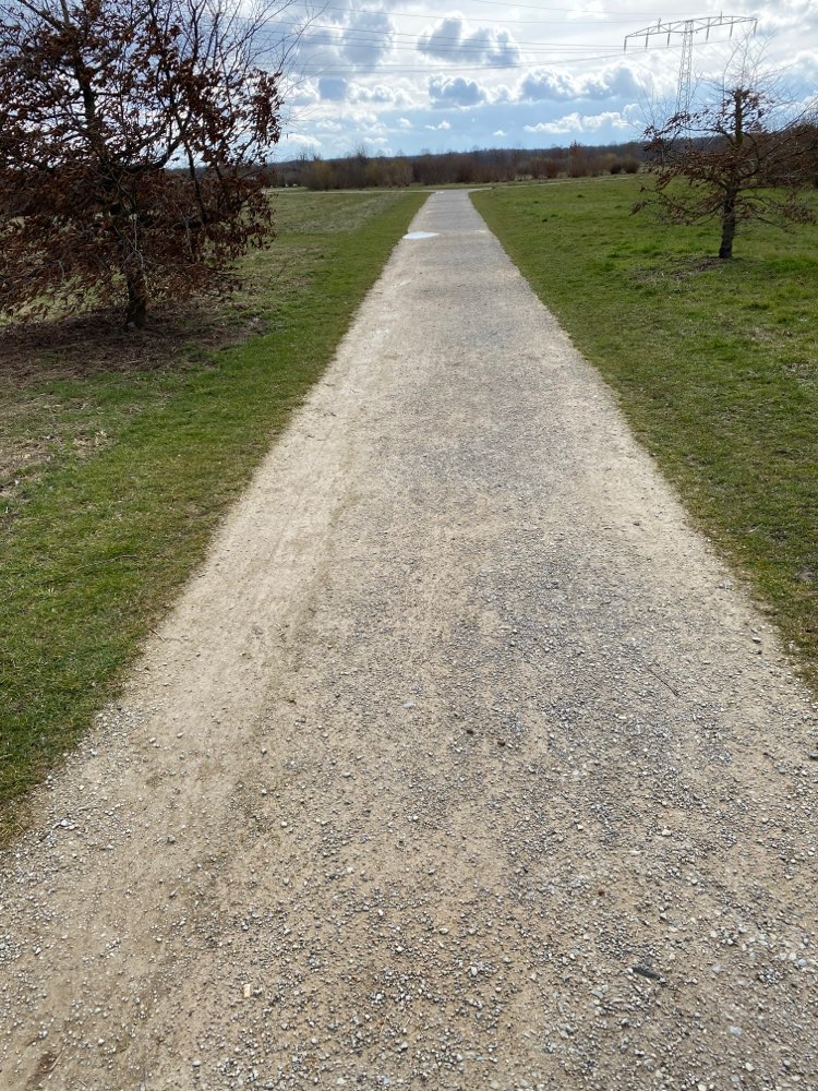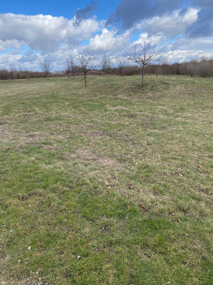 Wiesengelände mit Buschgruppen, anschließende Spazierwege