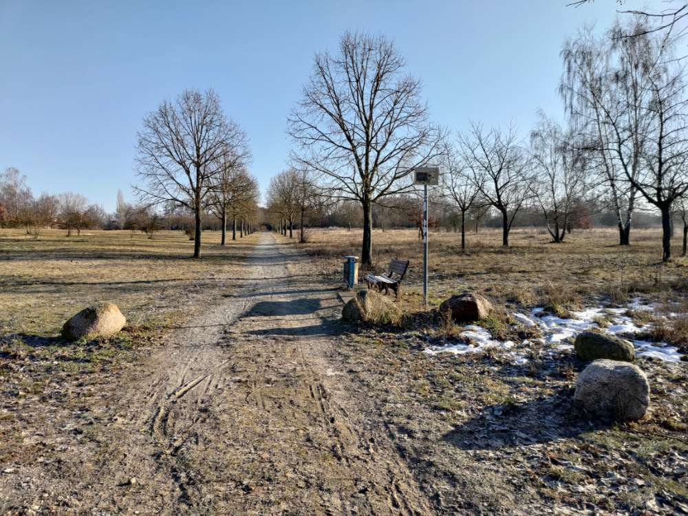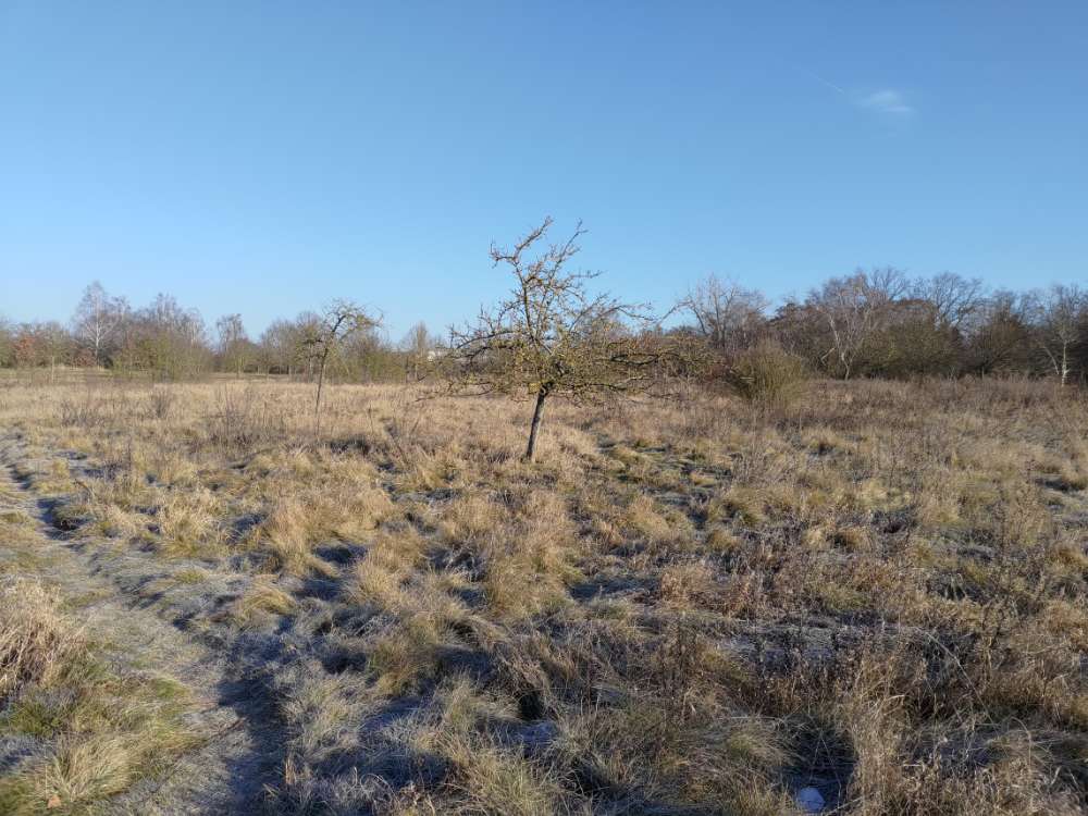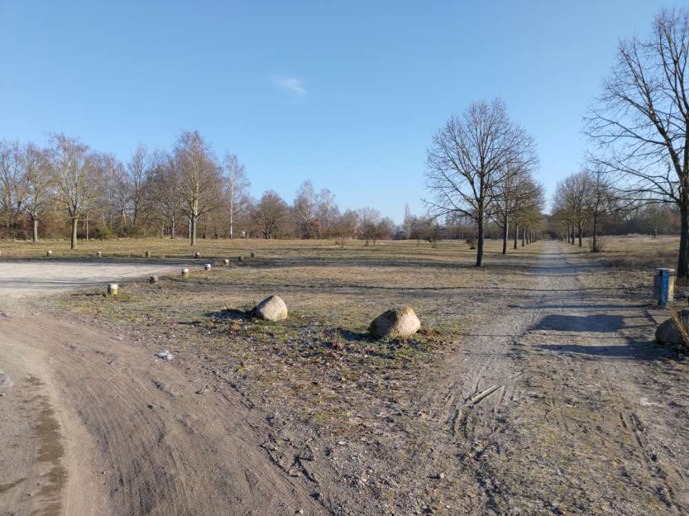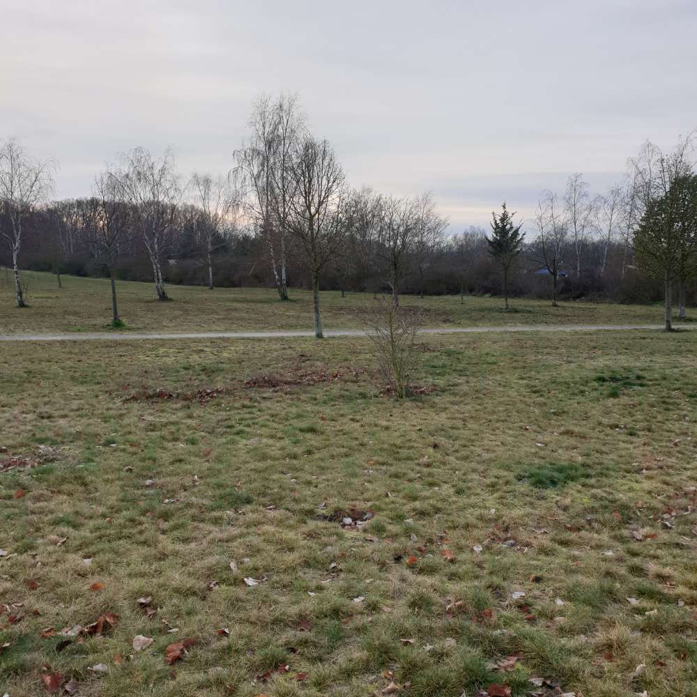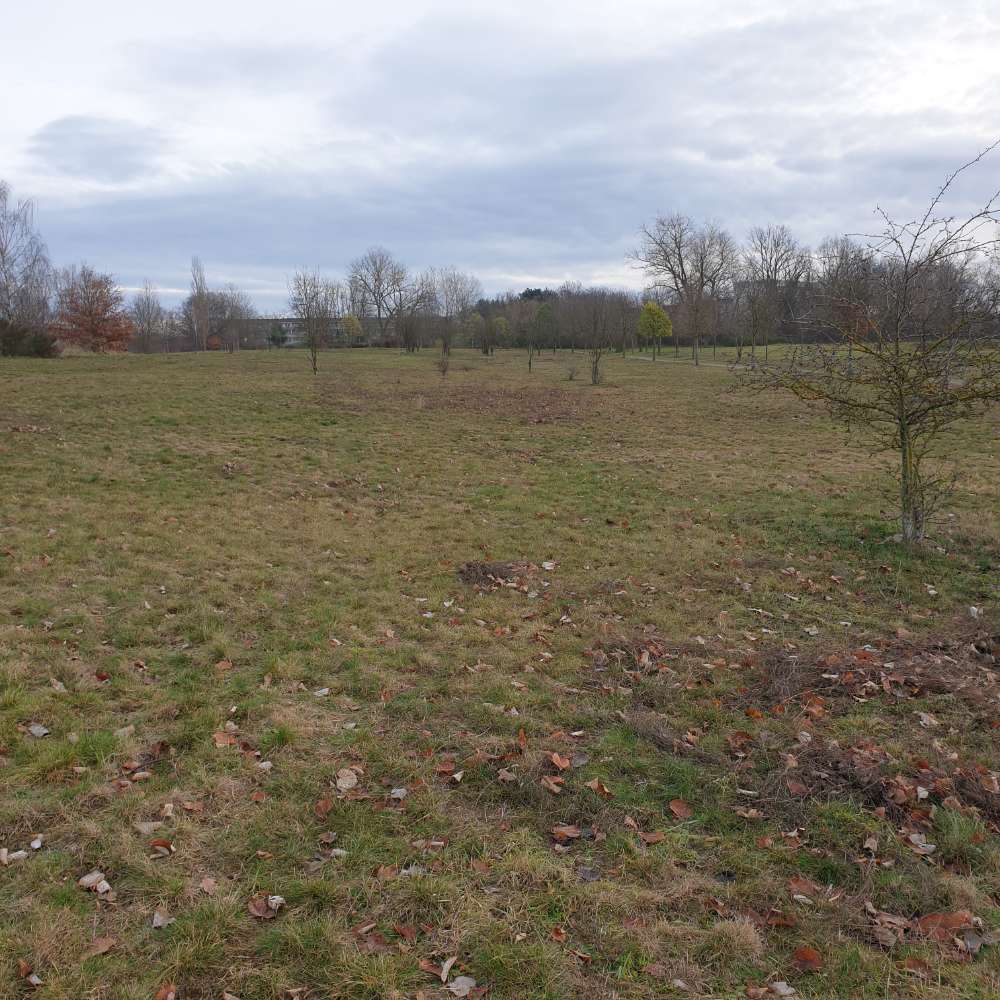 Die Wiese selbst ist recht groß. Wenn man mit dem Hund Ball oder Frisbee spielen will, oder er einfach gerne rennt, muss man zudem ein bisschen aufpassen, weil es auf der Wiese immer wieder tiefere Buddellöcher gibt.