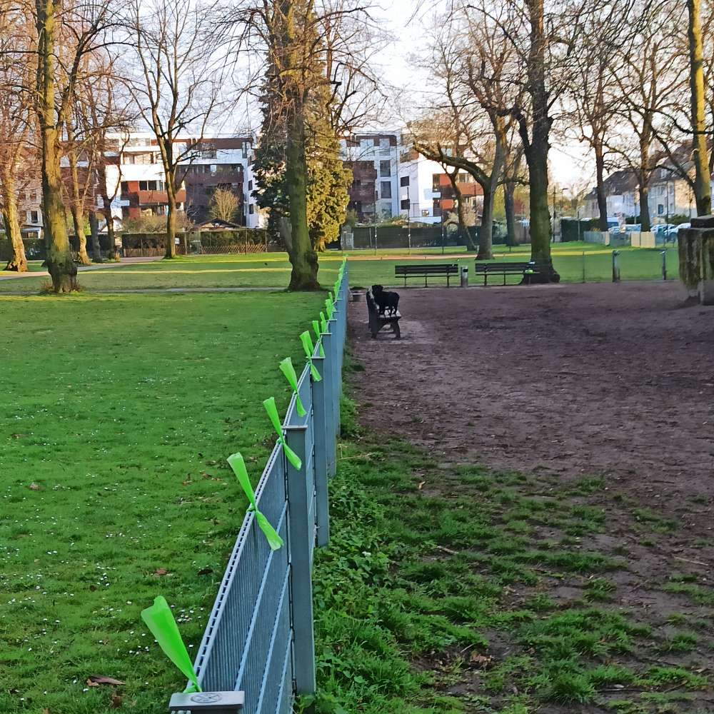 Eingezäunter Bereich direkt am gut besuchten Park.