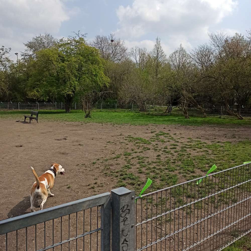 In diesem Park liegt eine eingezäunte Wiese mit Sitzmöglichkeiten. Oft trifft man dort auf andere Hunde.