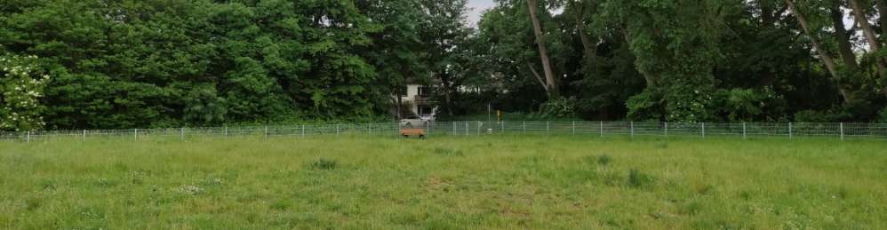 Für einen Hundeauslauf in Düsseldorf recht gross, so dass die Hunde auch wirklich rennen können. Seit ein paar Monaten eingezäunt. Mit Bänken und Mülleimer versehen.