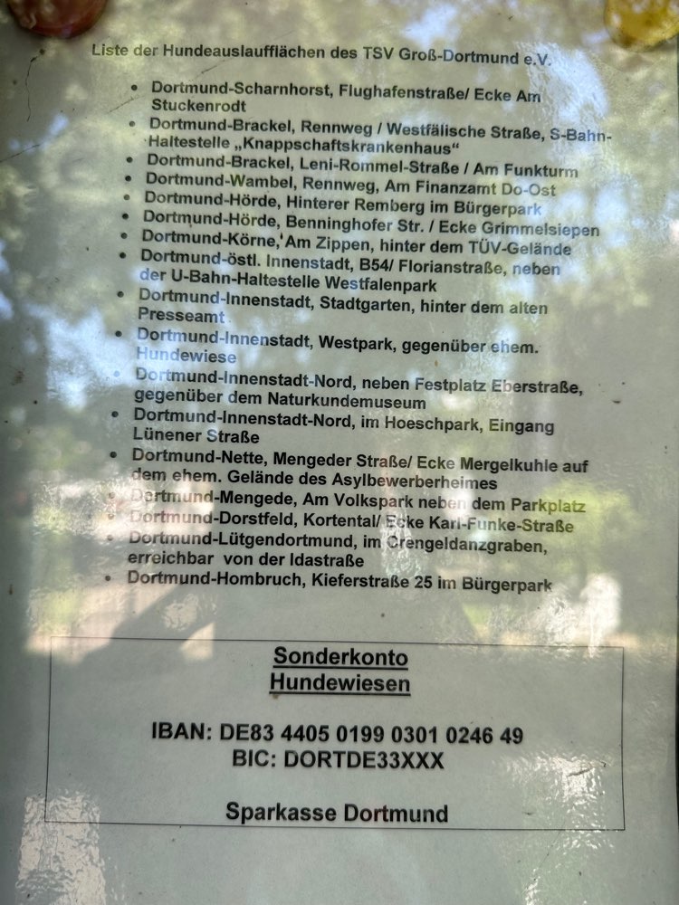 Also ich bewerte das Stück Hundewiese Sandhaufen in die folgt, ich finde es schön das ist das hier überhaupt gibt und es ist hier auch eingezäunt ist. Also der Sohn hat sieben lagen an den meisten Stellen was bedeutet denn dann Hund rüber springt, wär ich schon begeistert von dem Hund an sich ist die Sandlandschaft auch in Ordnung man hört ja so einiges gemacht in Form von Bäumchen pflanzen mehrere anhören man sollte dann aber auch nicht so viel erwarten weil es ist ja mitten in der Stadt und ich finde je nach Stadt Stadtteil Und ihren Möglichkeiten in den Stadtteilen ist das ne sehr nette und vor allem gut angelegte Idee. Es ist nicht am Kern der Straße und es ist auch nicht an Plätzen, wo die Leute sich über die Hunde ärgern könnten. Tatsächlich ist aber die grüne Wiese diese saftig neben der Hundesand Idee ist sehr viel schmackhafter für die Hunde was natürlich dann auch bedeutet, dass sie sich für den Sand wenig interessieren. Aber ich sag noch mal das ist gut ist es sowas überhaupt gibt.