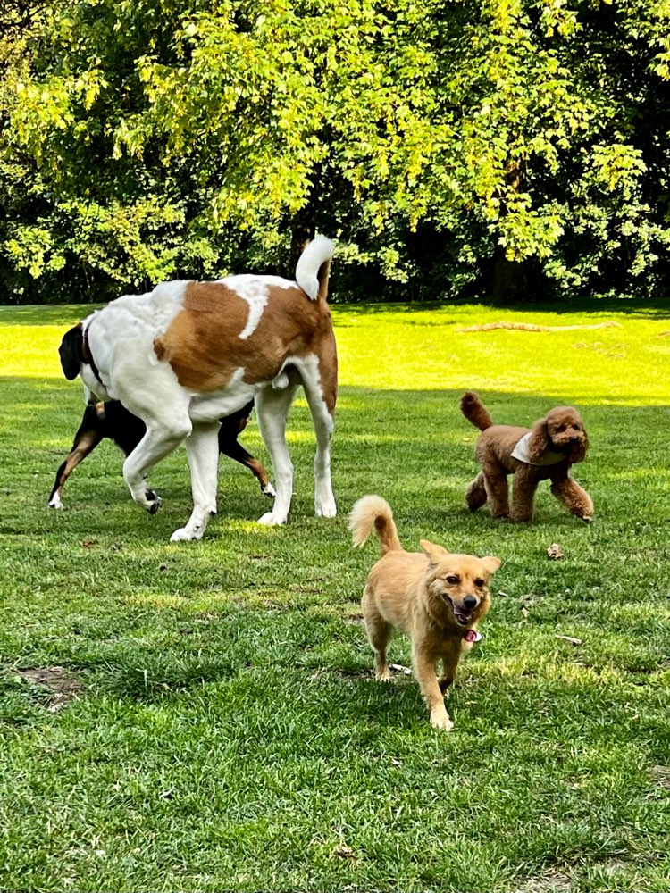 Meist finden sich nette Frauchen und Herrchen vor Ort. Die Hunde haben ihren Spaß auch wenn es nur eine kleine Wiese ist. 🐕🐾