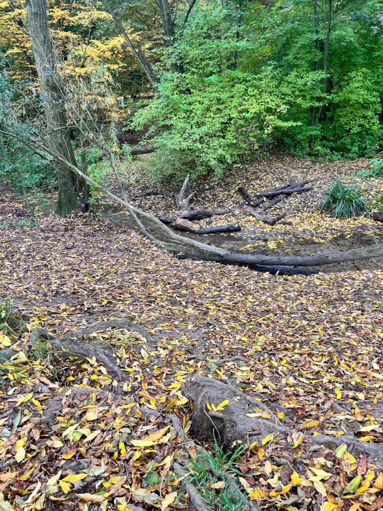 Bachlauf mit frischem, fliessendem Wasser. Bäume die Schatten spenden für die Hunde.