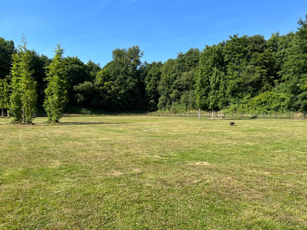 Die Wiese ist klasse. Leider sind fast nur große Hunde dort. Für unseren Ruhaardackel leider zu gefährlich wegen seinem Kreuz.