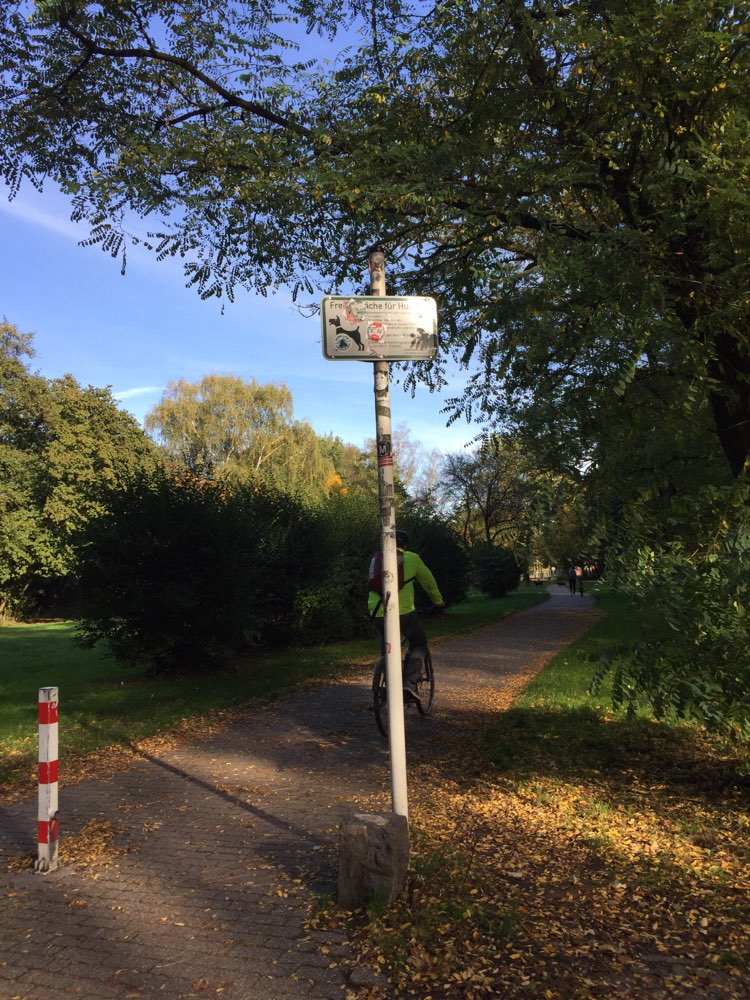 Es befindet sich ein Weg durch die Freilauffläche der von Fußgänger und Radfahrer genutzt wird. Da kann es schon mal zu unschönen Begegnungen kommen. Was aber selten ist. (Wir schlimmen Hundebesitzer u.s.w.)