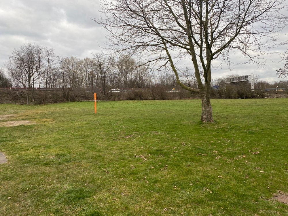 Nur durch die Leitplanke und ein paar Büsche von der Autobahn getrennt.