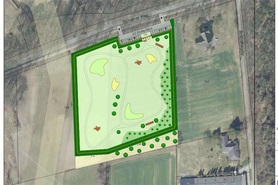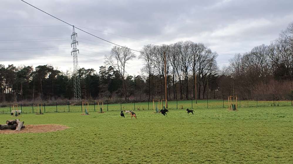 Gepflegte und gut eingezäunte Wiese. Parkplatz vorhanden. Wenn wir bisher dort waren, sind wir auf nette Hundebesitzer getroffen. Wenn die Kontakte zwischen den Hunden mal nicht passen, ist genug Platz, um sich aus dem Weg zu gehen. Im Sommer bei hohen Temperaturen meiden wir den Platz, weil es keinen Schatten gibt, die angepflanzten Bäume sind noch nicht groß genug. Ansonsten perfekt für unsere Zwecke.