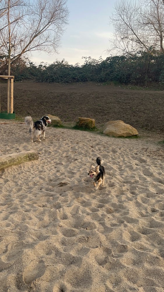 Große, komplett eingezäunte Freilauffläche. Es gibt einige Trainingsmöglichkeiten wie z.B. eine Wippe, einen Slalomparcour, Treppen, verschiedene Untergründe o.Ä. Außerdem gibt es eine große Sandfläche sowie am Ein-/Ausgang 2 einbetonierte Waschplätze, mehrere Sitzgelegenheiten und eine Toilette