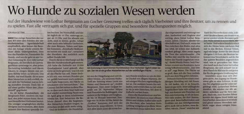 Es war sehr schön für das erste Mal meine Hündin hat sich sehr gefreut kann man nur weiterempfehlen wir gehen da auf jeden Fall noch mal hin (Jaspers)