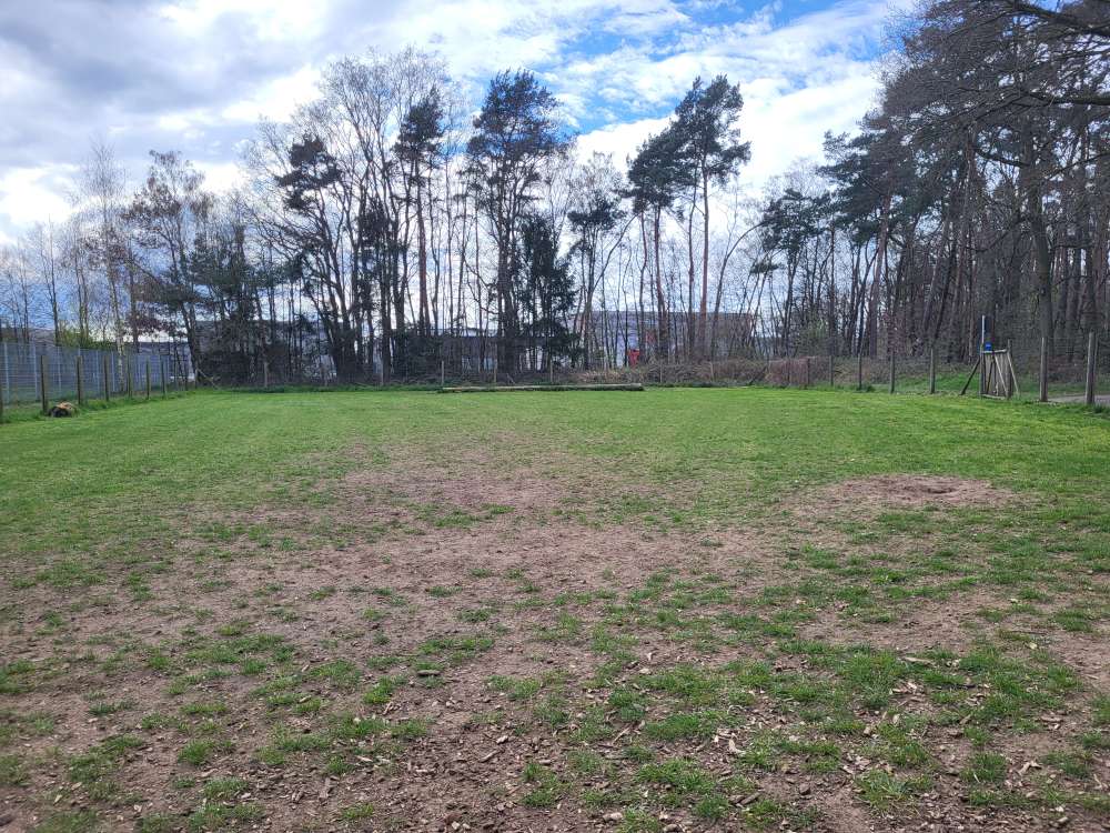 Die Hundeauslauffläche ist größtenteils nur noch ein Sandplatz, aber es gibt noch eine grüne Ecke. Die Hundehalter dort sind sehr nett, auch wenn es hin und wieder mal kracht.