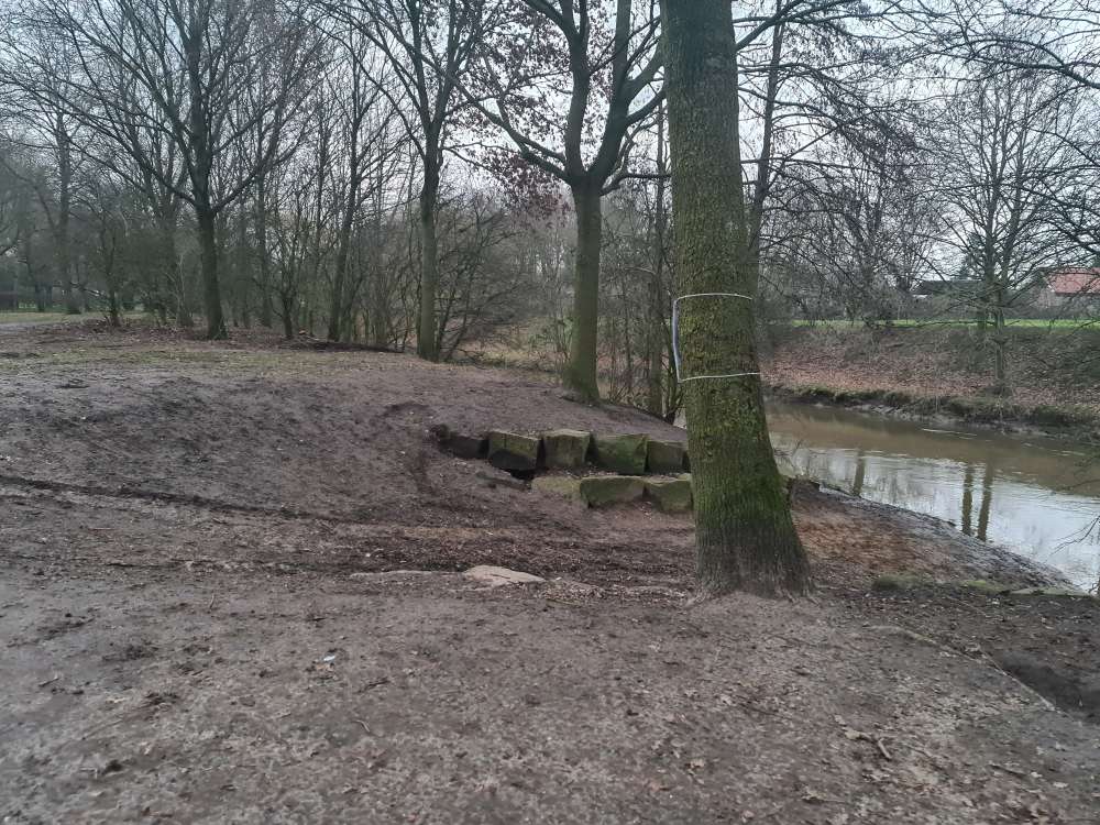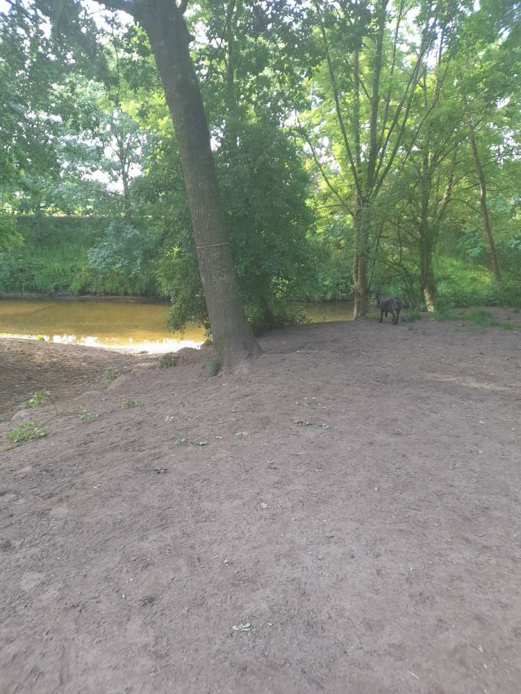 großzügige, voll eingezäunte Grünanlage, freizugängliche Uferböschung zur Berkel, ein traumhaft schöner Abenteuerspielplatz für kleine und große Wasserratten, jedoch nichts für schöngeföhnte Hunde und/oder Herrchen 😉