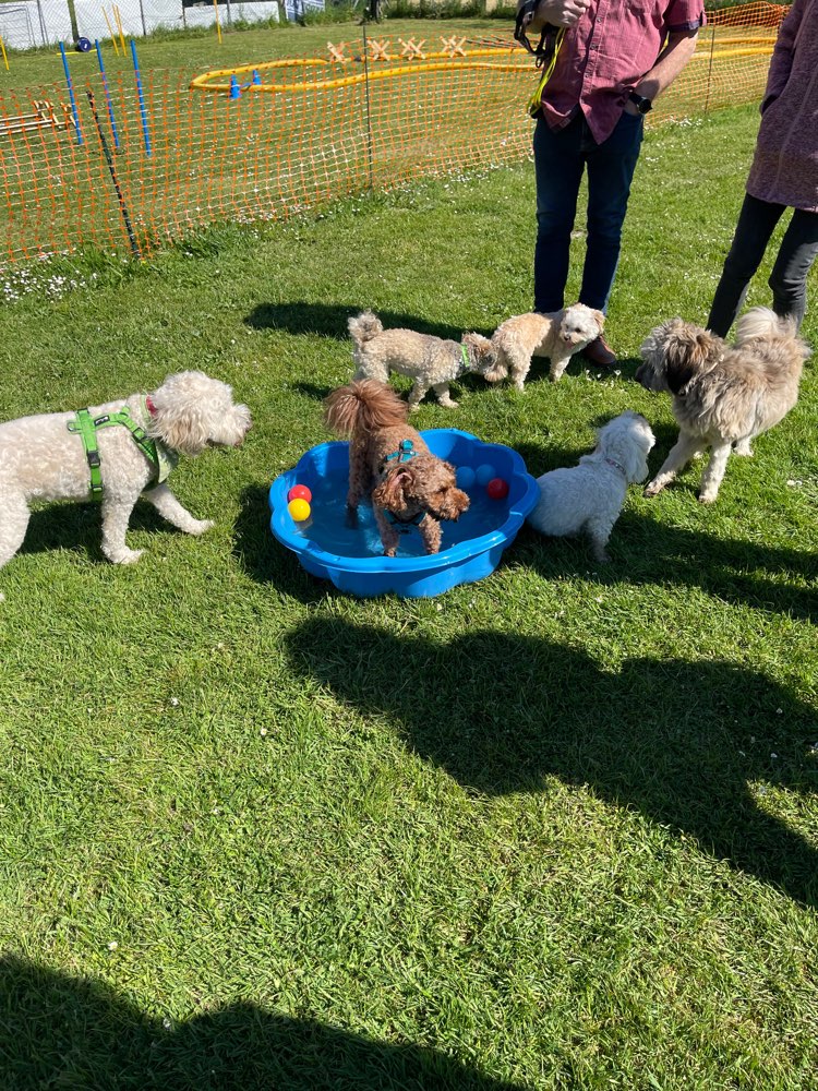 Nach vorheriger Anmeldung (015734777688) können Sonntags von 10:30 - 11:30 und Dienstags von 19:00 - 20:00 Uhr Hunde bis 40 cm Schulterhöhe miteinander spielen, kommunizieren, toben und ruhen. (Die Zeiten sind nicht aktuell! Homepage nachsehen)