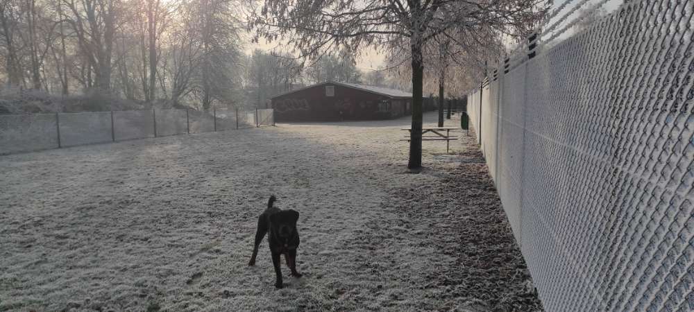 Die Wiese ist gut übersichtlich, 2 Tische mit Sitzbänken stehen zur Verfügung. Der Zugang ist von beiden Seiten der Schützenhalle aus möglich. Der Platz ist zwar nicht riesig, aber trotzdem können sich die Hunde hier austoben. Es gibt Kotbeutelspender mit entsprechendeülleimern. Autoparkplätze stehen an der Schützenhalle zur Verfügung. Der Zugang ist von 7:00Uhr bis 22:00Uhr gestattet. Ich meine, es gibt auch eine Beleuchtung.