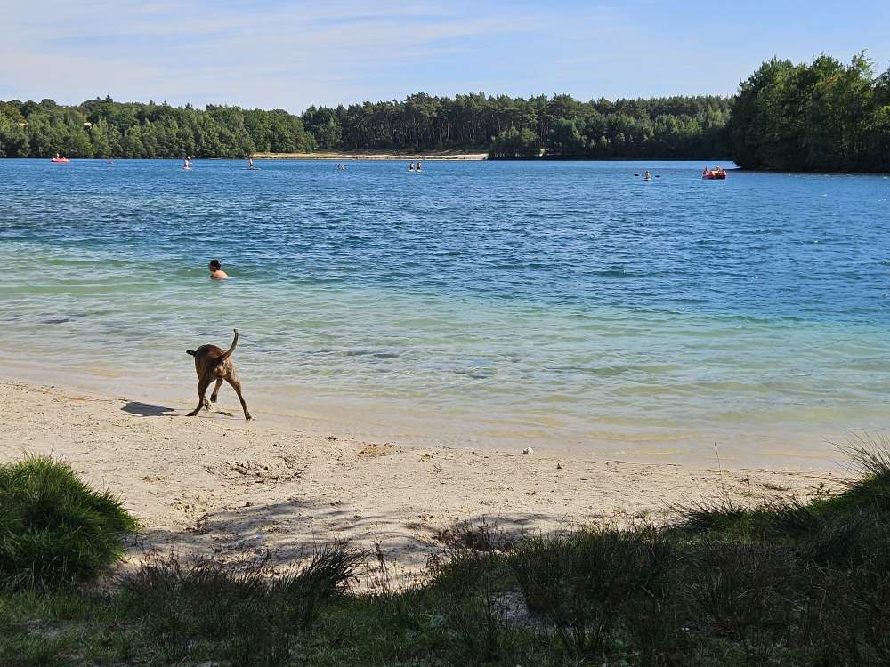Ein absoluter Traum. Beschreibung passt ganz genau. 🌴🌞 Sehr schön auch, dass er nicht eingezäunt und a'la Hundewiese angelegt wurde. Also ein ganz normaler Badestrand für Zwei- und Vierbeiner, was in einem über geht. Sher viele unterschiedliche Hunde dort, die wirklich alle samt sehr gut hören, frei laufen kennen und Begegnungen eigentlich ignorieren. Kinder spielen und schwimmen neben den Hunden, so wie man es sich wünscht. Eben ein Ausflug für die ganze Familie. Sehr sehr schön.