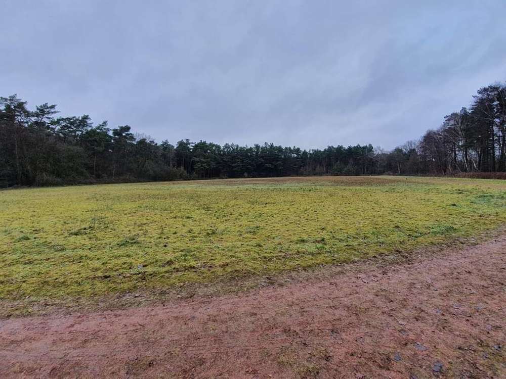 Im Sommer auch mit Schattenplatz, da um die grosse Freilauffläche, halbrund ein Waldstreifen herläuft.