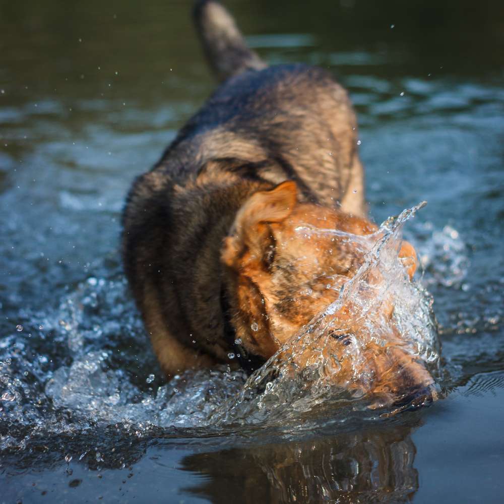 Es gibt einen Parkplatz und viele schöne Stellen, wo die Hunde ins Wasser gelangen können.
