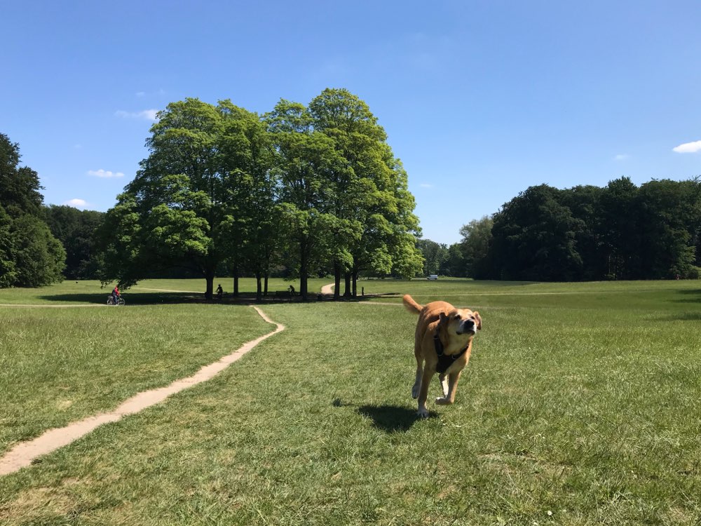 Eine schöne große Hundewiese direkt am Adenauerweiher, mit einigen Spielgefährten.