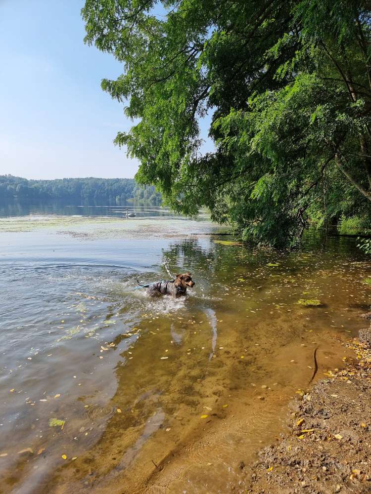Wald mit viel Auslaufplatz und wenigen Gefahren. Ganz selten Köder zu finden oder Kadaver, aber es gibt Pferde und oft viele Fahrrad fahrer. Jedoch kann man denen aus dem Weg gehen, da es viele Abzweigungen gibt und man auch durch den Wald laufen kann. Wenige stehende Gewässer und ein Bach, der durch den ganzen Wald läuft.