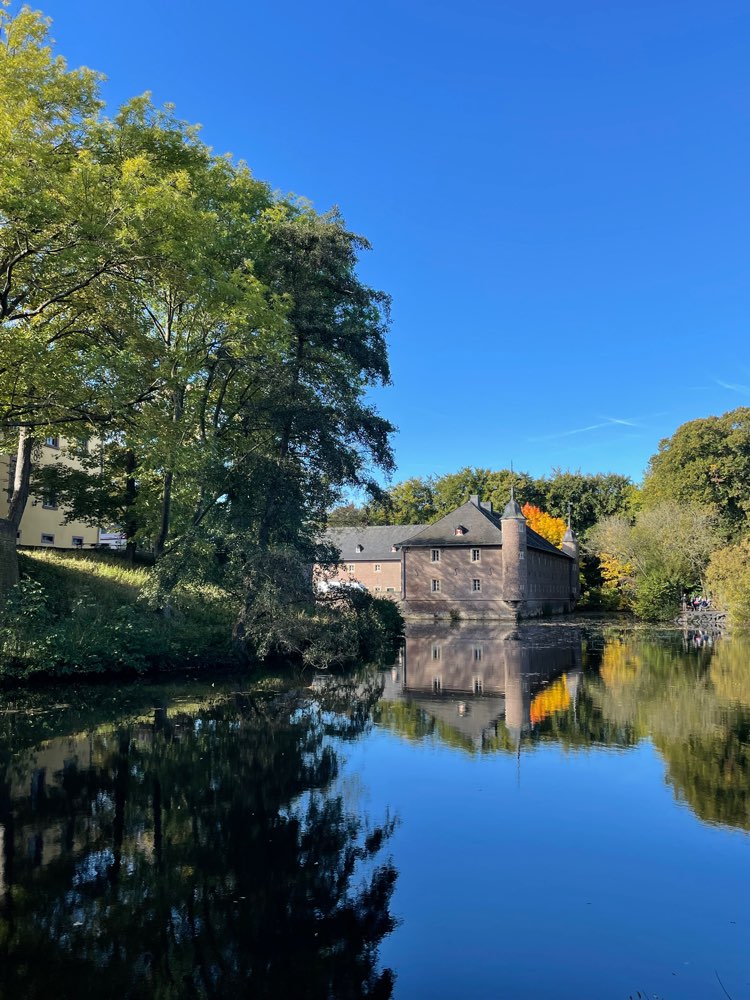 Um die Burg drum herum wie ein Park und einen schönen Hof haben sie auch