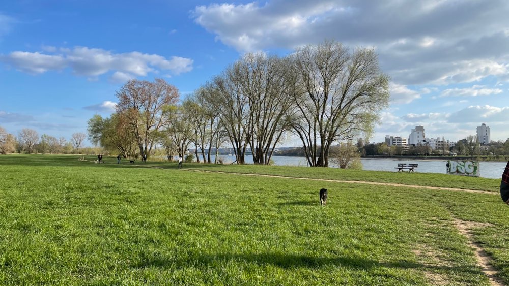Für meine beiden, wovon einer ein Welpe ist, war alles dabei von kleinen über große Hunde, alte junge, alles war vertreten. Es war echt wunderschön. Gegen 14:00 Uhr circa 30-40 Hunde. Die Hunde können direkt aus dem Rhein ein bisschen Wasser trinken. Wir werden auf jeden Fall am Wochenende öfters dahin fahren.😍