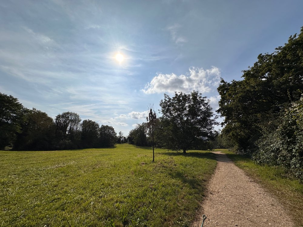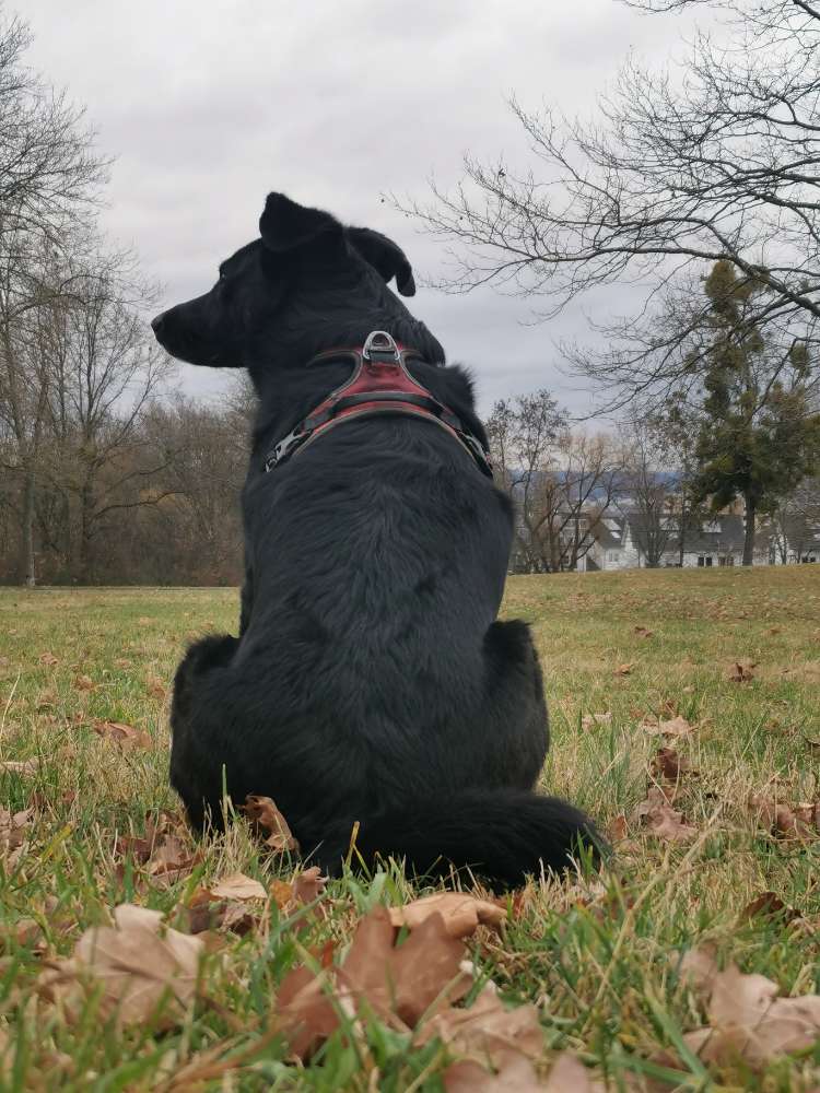 Es ist eine schöne Gegend mit viel Platz. Leider ist das Teilstück Wiese, das als Hundefreilauf ausgewiesen ist, nicht eingezäunt. Für misstrauische Hunde wie Mattes ist das eher ungünstig, weil die Anwohner (zu Recht) den gesamten Finkenberg gerne für Spaziergänge nutzen, daneben aber auch Fahrradfahrer die Wege kreuzen.