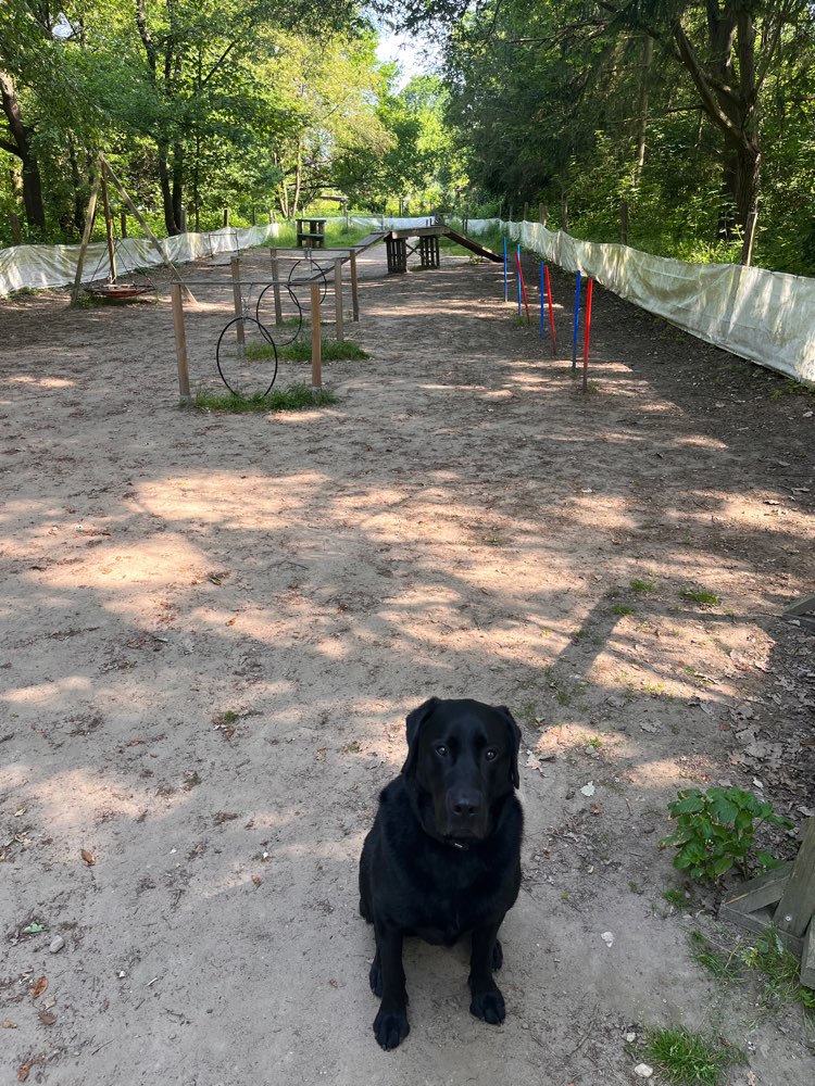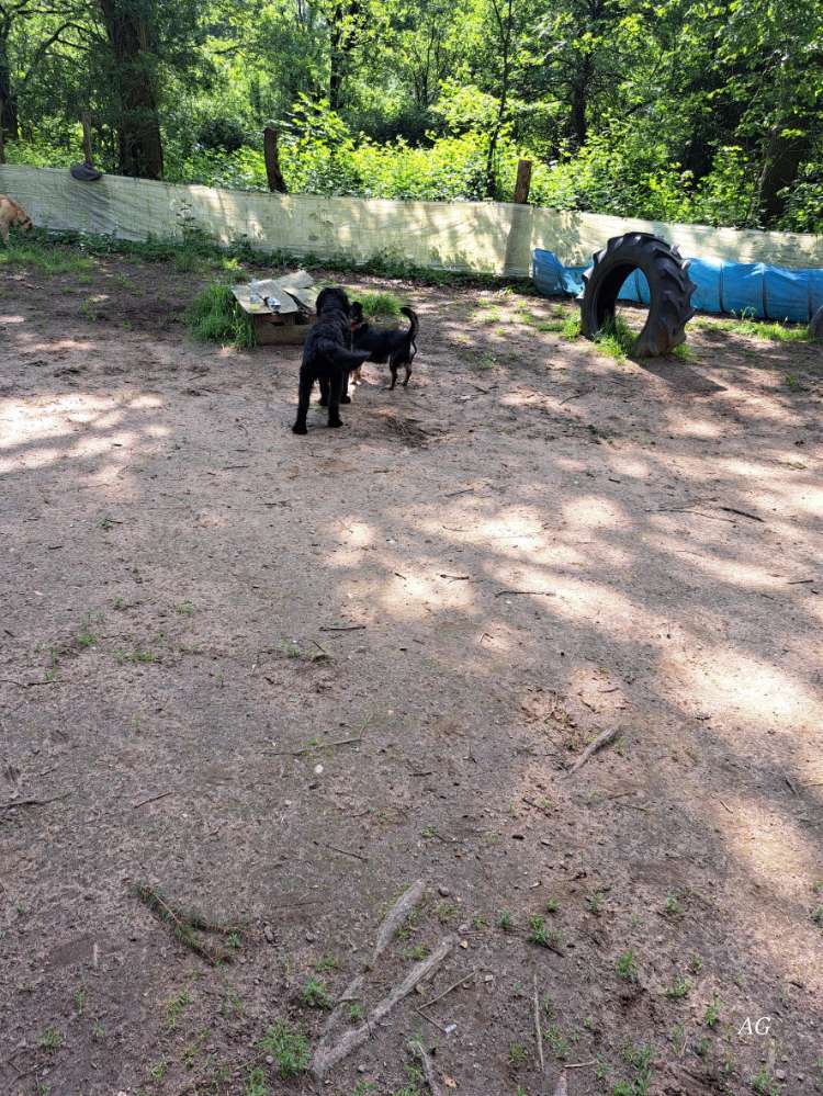 Hundespielplatz mit Auslauf und Spielsachen (Wippe, Schaukel, Tunnel und viel mehr). Getränke Stationen, eingezäunt.