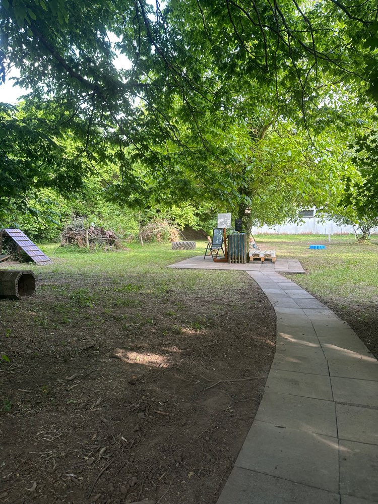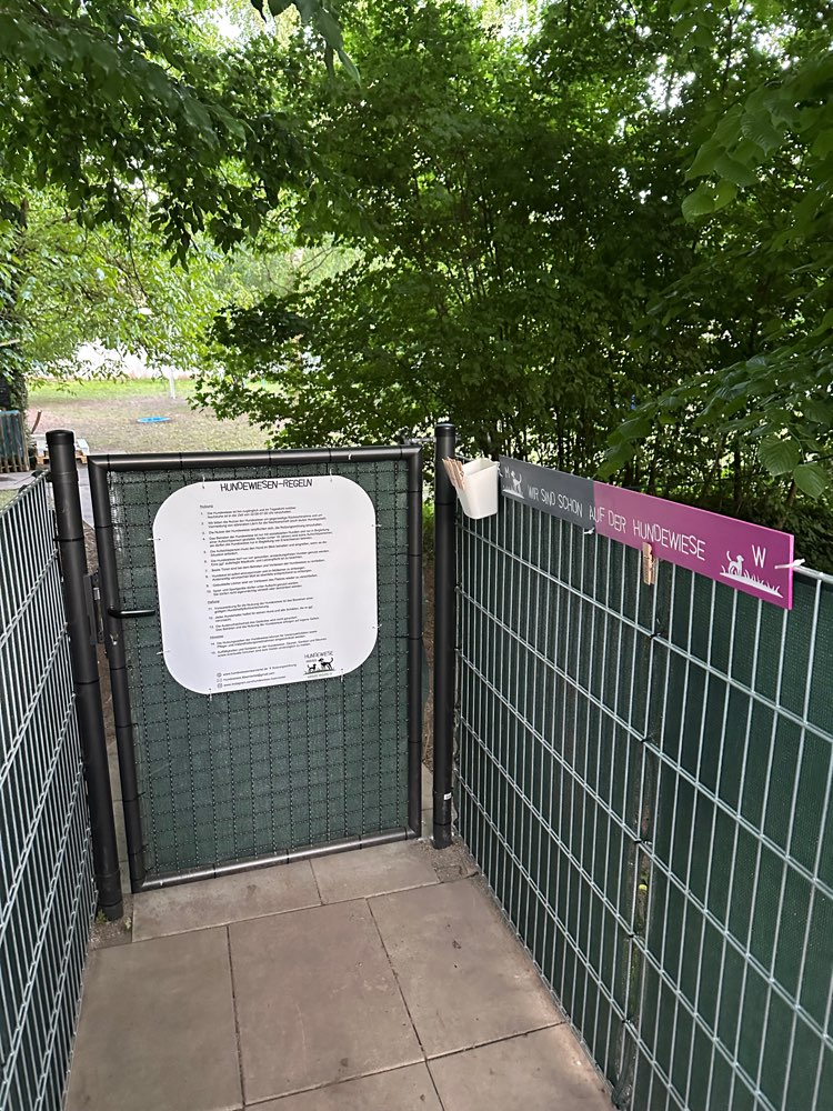Wir fanden die Hundewiese sehr schön und gepflegt. Es gibt viele Spielmöglichkeiten, Schattenplätze und sogar Frischwasser für die Hunde. Auch die Menschen können sich bequem hinsetzen. Absolut empfehlenswert.