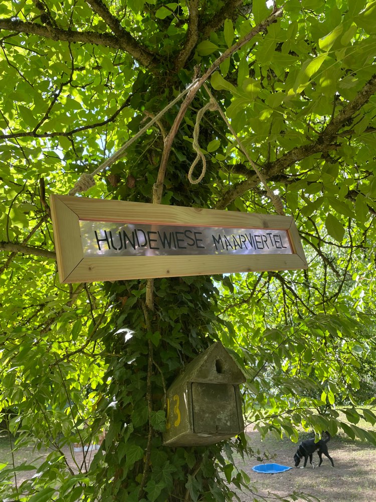 Wir hatten auf der Hundewiese schon sehr viele schöne Hundekontakte! Aber auch alleine wird es dort dank der aufgebauten Stationen nicht langweilig.