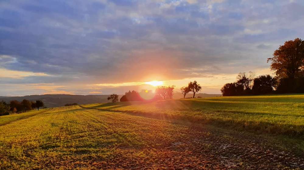 Schöne Felder und Wiese wo die Hunde auch noch frei laufen dürfen. Im Sommer können jedoch hin und wieder die Wiesen mal eingezäunt sein wegen Kühen oder Schaafen.