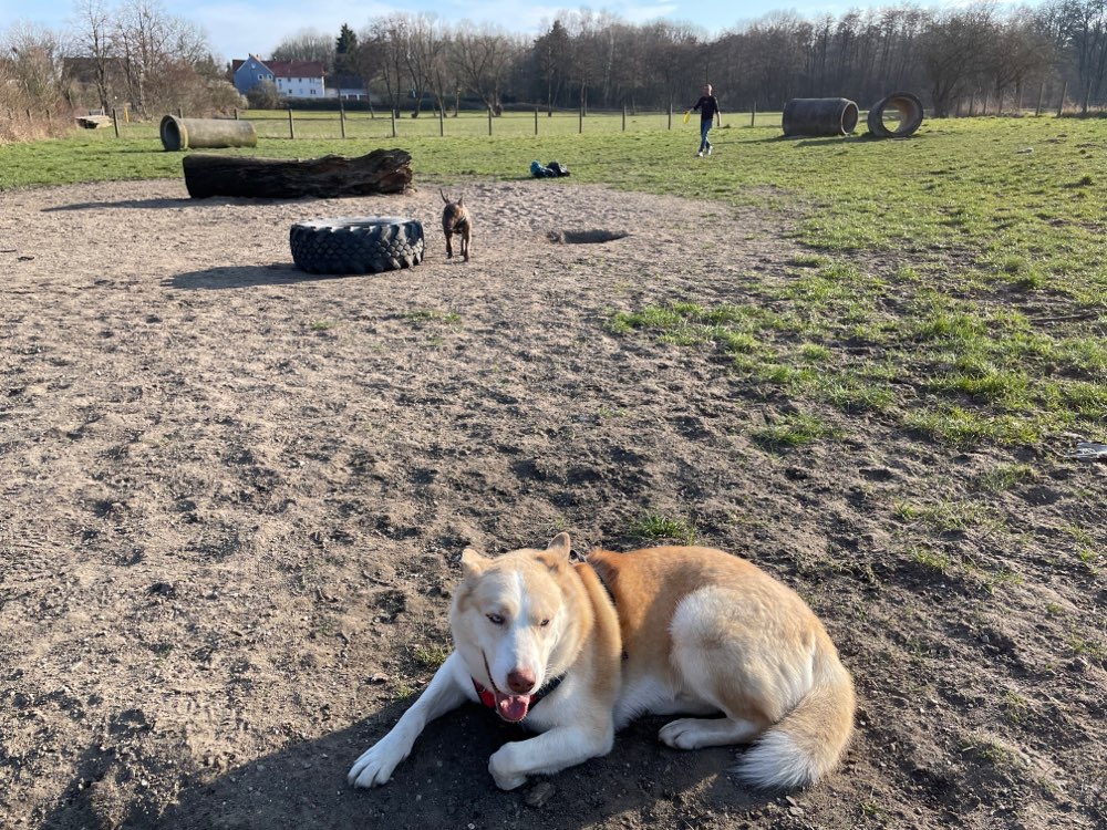Schöner Auslauf für Hunde. Es gibt Sitz- und Unterstellmöglichkeiten. Mülleimern Kotbeutelspender sind auch vorhanden. Es ist nicht die größte Wiese, aber sie ist komplett umzäunt und hat ein Schleusentor welches leider schwer gängig ist. Aber im großen und ganzen ist Siebenen Besuch wert.