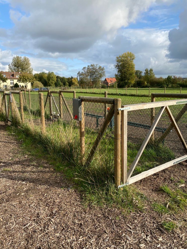 Eine tolle Wiese mit Schleuse und Sitzmöglichkeiten. Auch eine Wasserzapfstelle ist vorhanden. Leider war das Wasser noch abgestellt wegen Frostgefahr. Es gibt dort einen Kanister, normalerweise mit Wasser gefüllt, aber leider durchlöchert, also kein Wasser mehr vorhanden. Warum müssen Menschen immer alles kaputt machen!!!! Es waren heute kaum Buddellöcher vorhanden. Wenn jeder die von seinem Hund wieder zumachen würde, wären keine vorhandenen. Schaufel ist nämlich vorhandenen. Eine tolle Sache von der Stadt, die Hundewiese, die leider von einigen Menschen nicht geachtet wird.