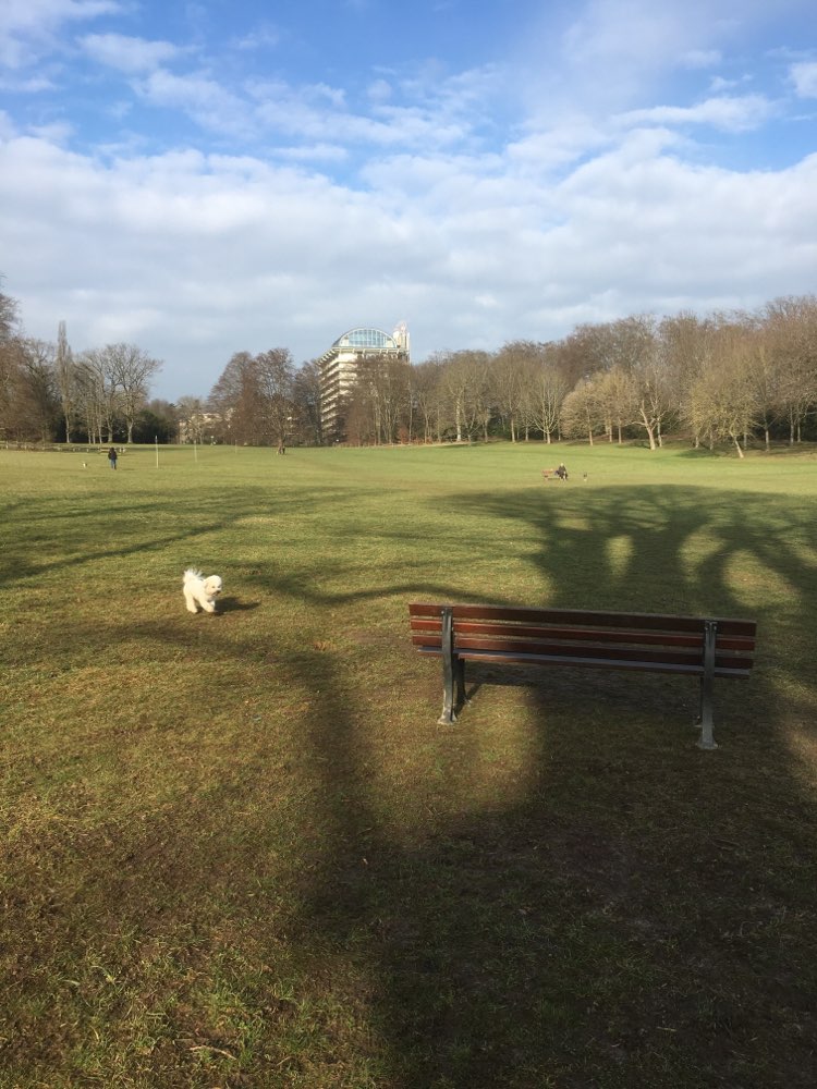 Wir sind regelmäßig auf dieser Hundewiese anzutreffen, da wir sehr nah wohnen und so den Huthpark für die schnelle Gassirunde bevorzugen. Für längere Spaziergänge gehen wir dann zum Lohrberg auf die Felder.