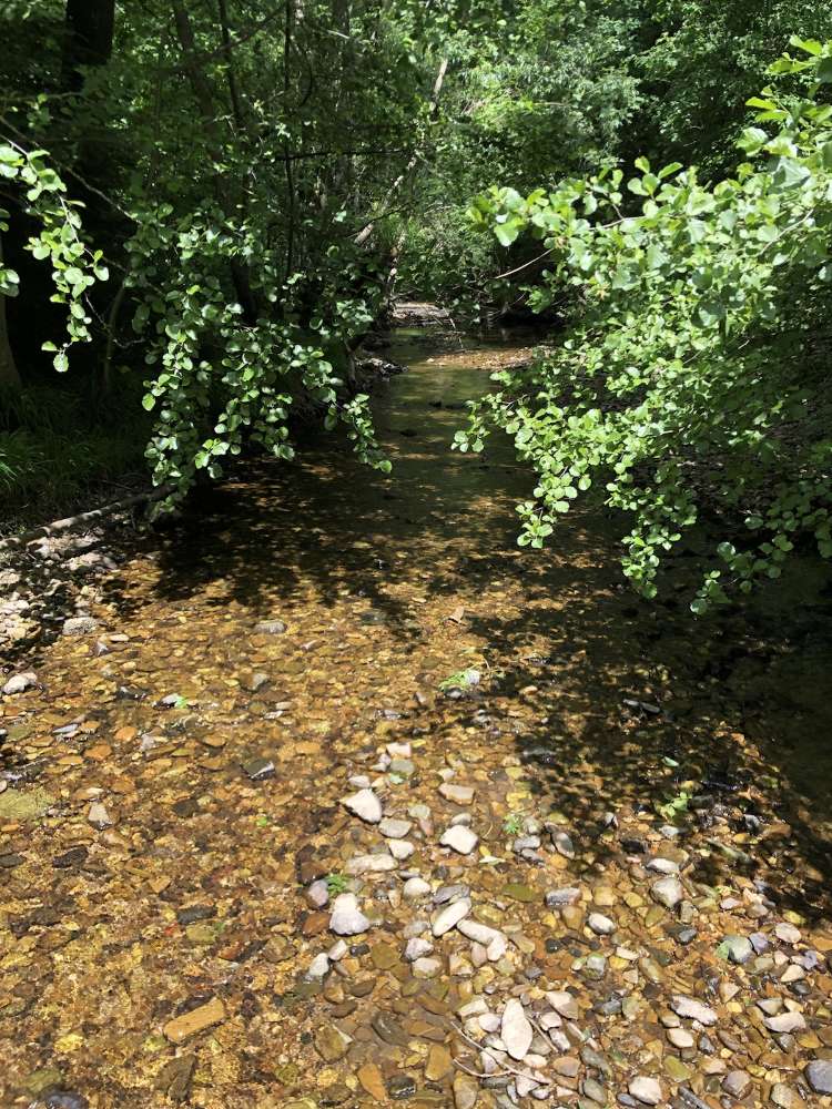 Der Erlenbach ist in diesem Abschnitt direkt in einem kleinen Waldstück gelegen und perfekt für die kleine Abkühlung in den heißen Sommermonaten geeignet und nicht nur bei den Vierbeinern sehr beliebt. Eine Leinenpflicht gilt außer zur Brut- und Setzzeit nicht.