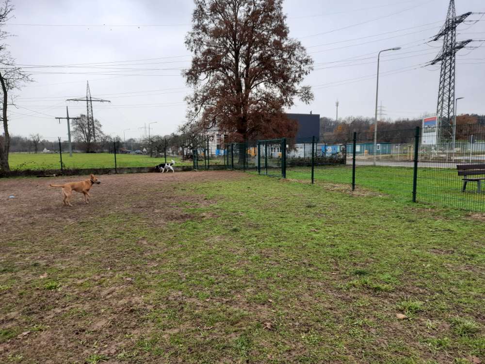 Zwei von einander trennbare, eingezäunte Hundewiesen im Industriegebiet