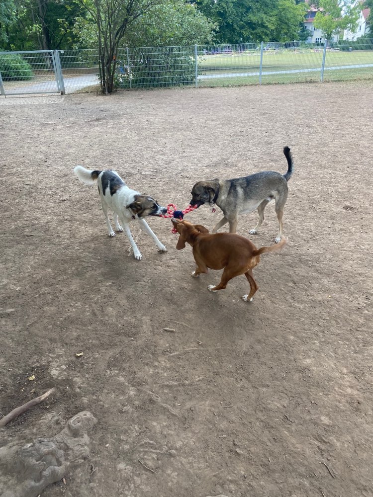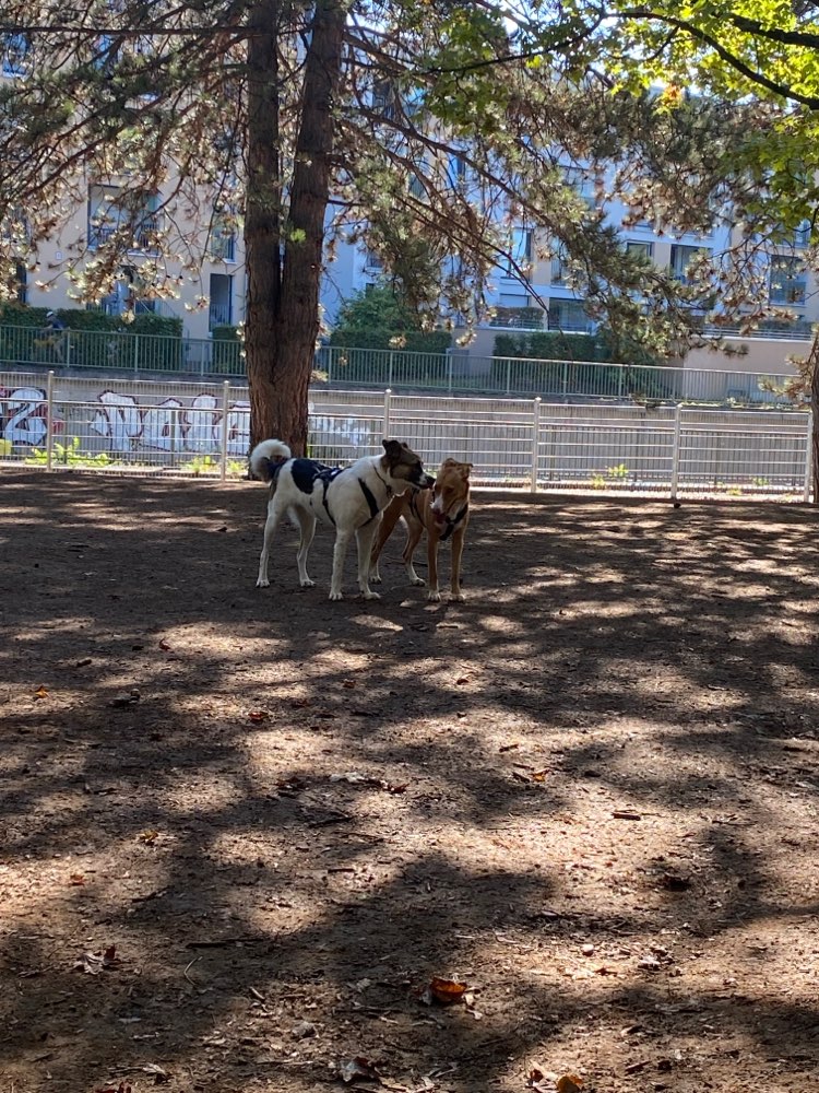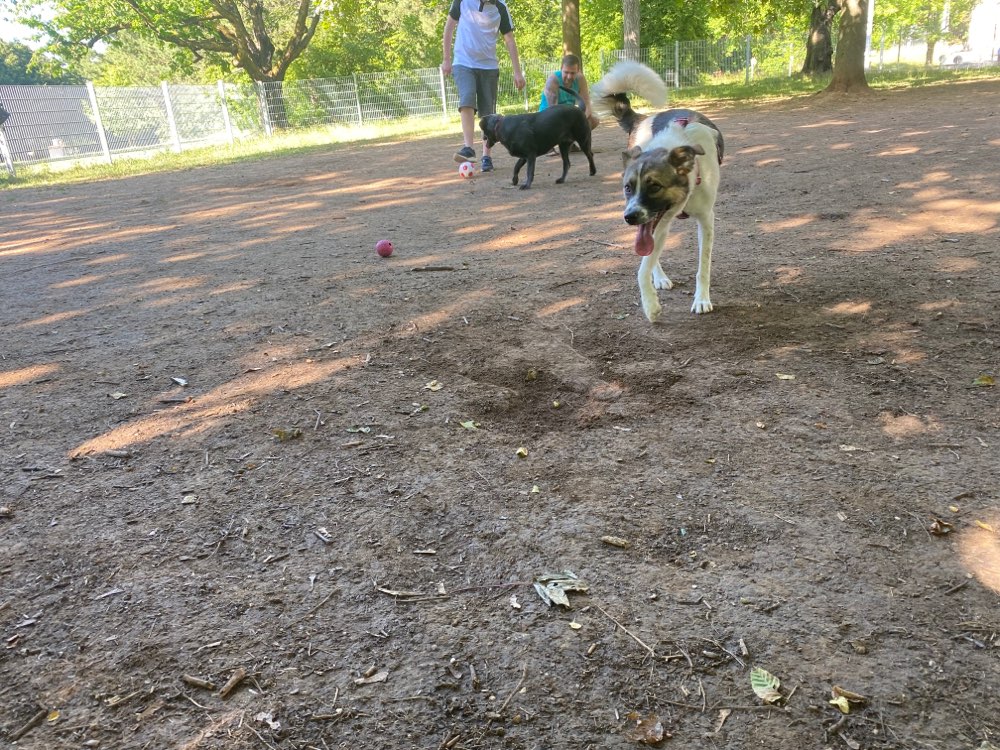 Bei Regen eine riesige Matschschlacht und im Sommer würde ich den Auslauf in der Hitze meiden, da die Bäume nur bedingt schützen.
