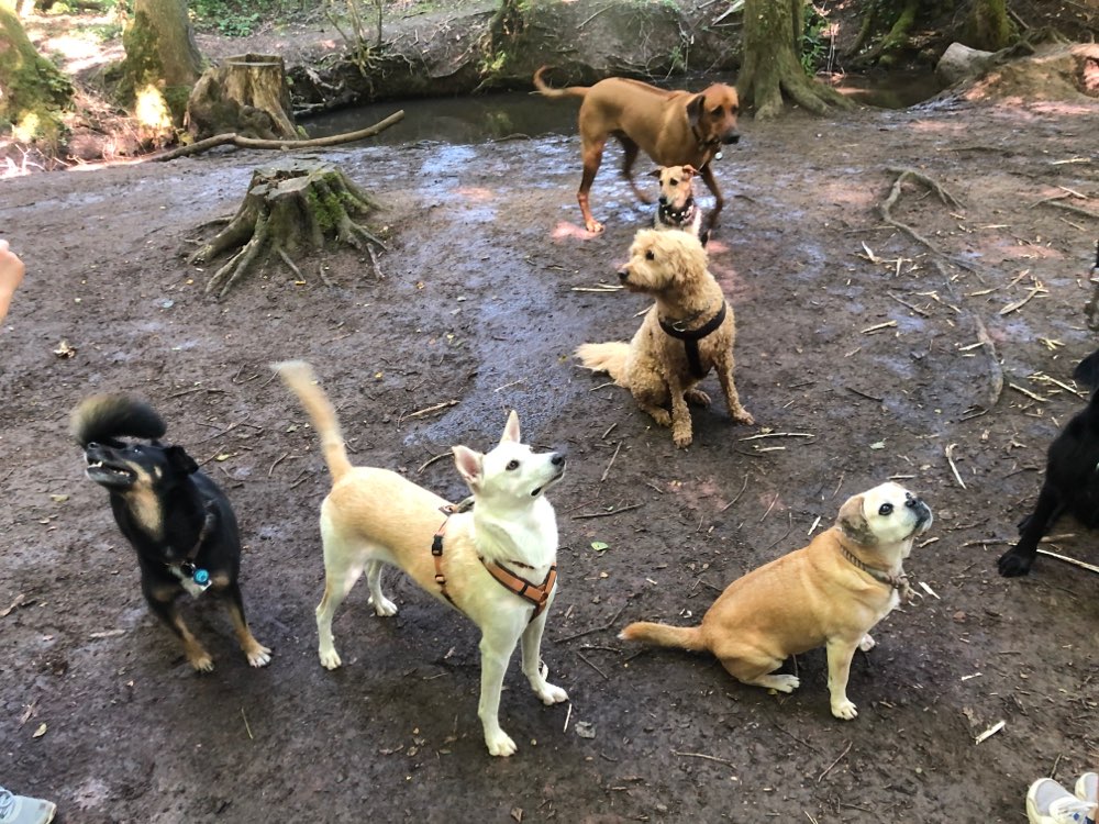 Ein großes Freilaufgebiet, in dem man stundenlang mit dem Hund durch den Wald spazieren kann.