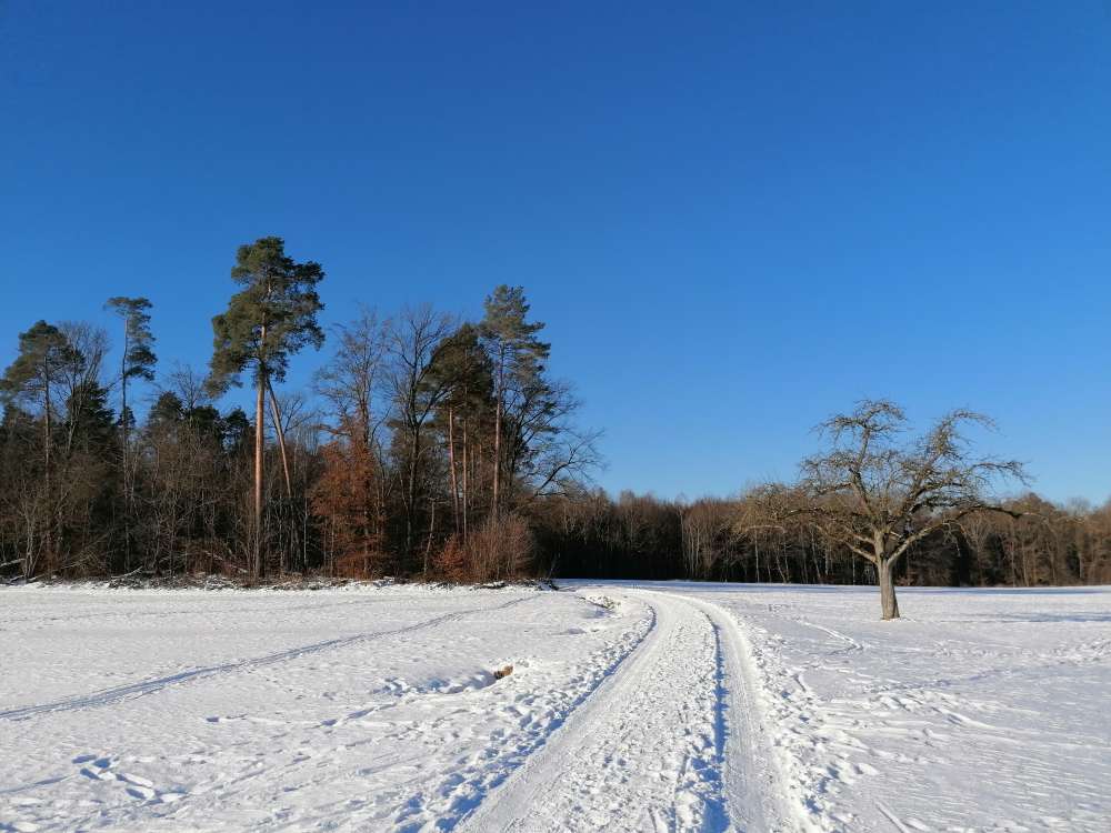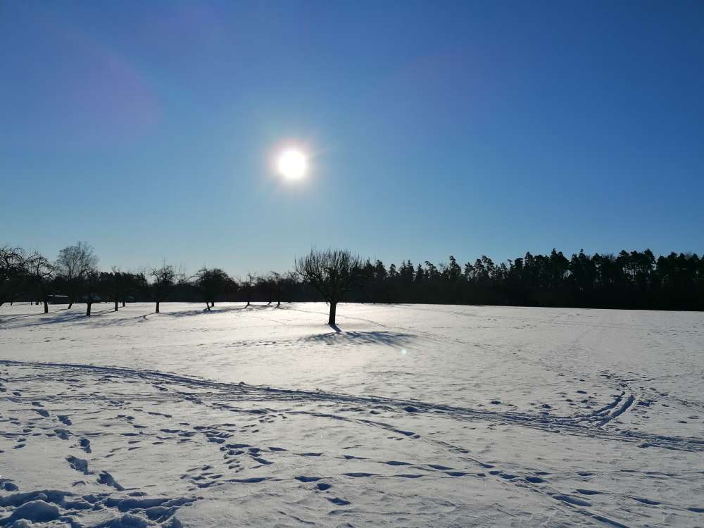 Schöne Hunderunden möglich durch Wald und über Streuobstwiesen.