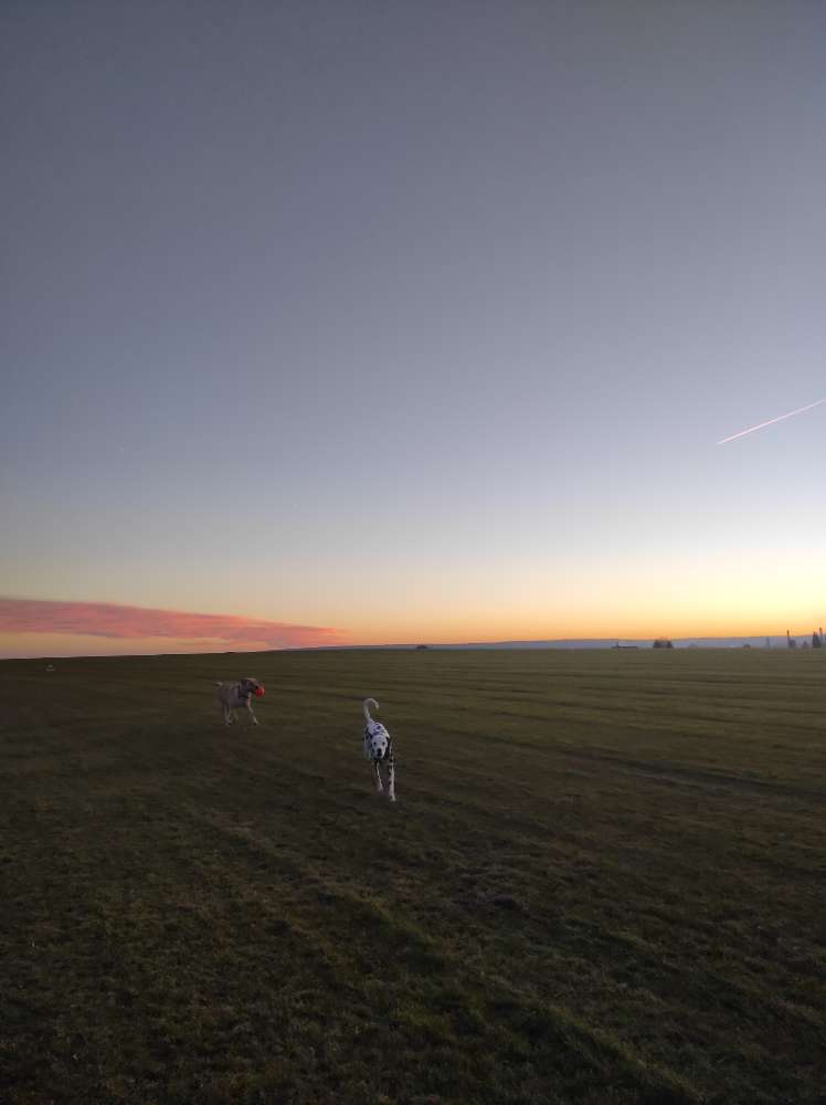 Hier trifft man immer Spielkameraden für sein Liebling . Wir laufen jeden Tag dort oben . Manchmal spielen bis zu 6 Hunde zusammen . Einfach ein toller Ort da oben .
