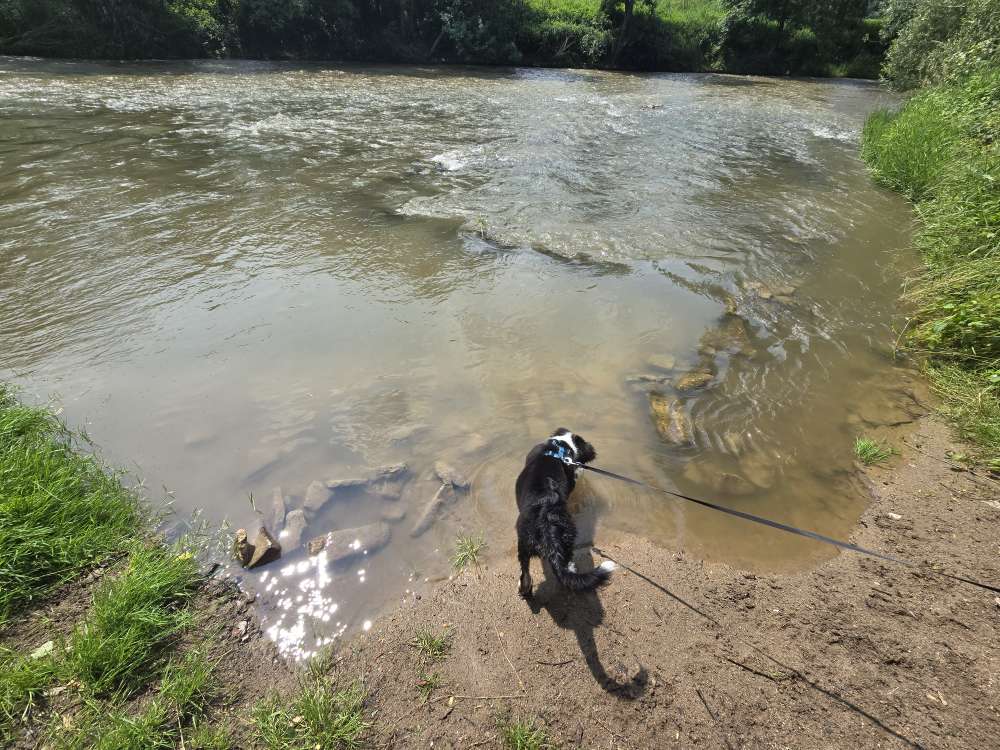 Sonst eine sehr schöne Stelle wo man mit dem Hund ins Wasser gehen kann ohne sich große Sorgen zu machen. Trotz überflutungszeit ist ein schönes Becken gegeben um die kleinen planschen zu lassen. Unsere ist nicht freiwillig zur Strömung gegangen.